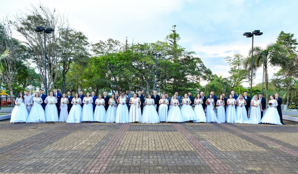 O Casamento Cooperado foi realizado em São Lourenço do Oeste (SC), formalizando a união de 23 casais. Desde 2009, a iniciativa que fortalece vínculos familiares e comunitários já soma 35 edições e oficializou o casamento de 1.077 casais.