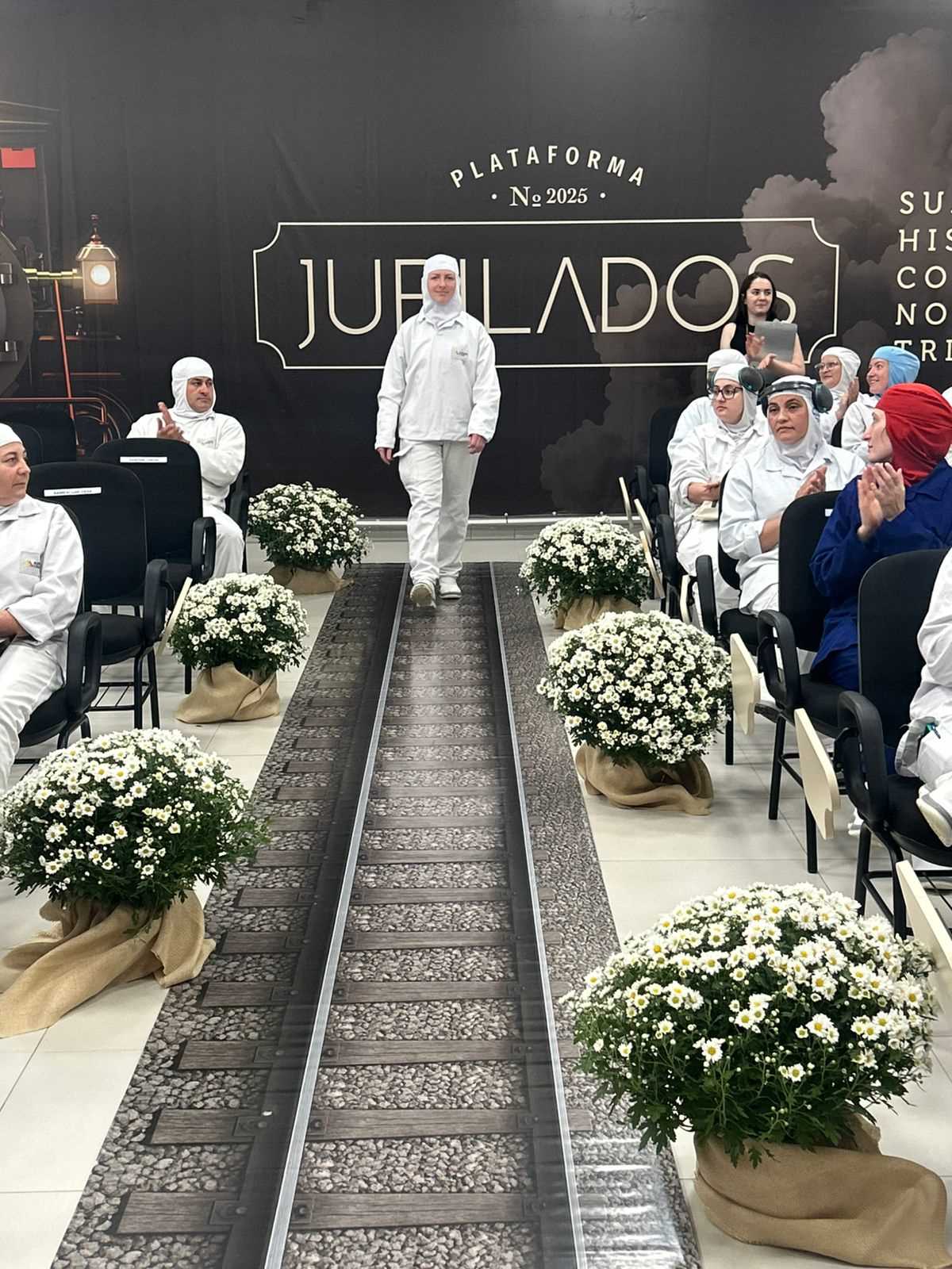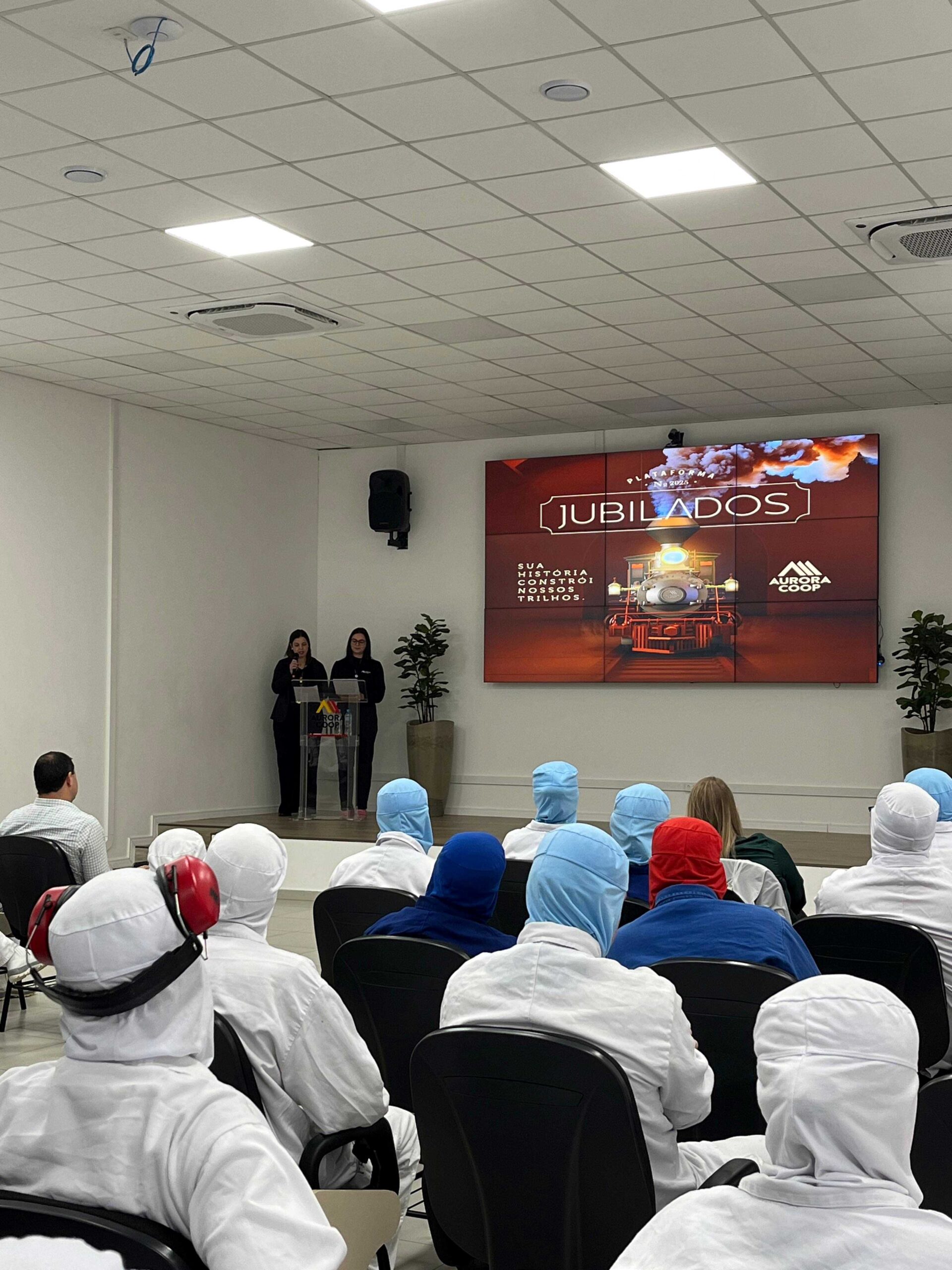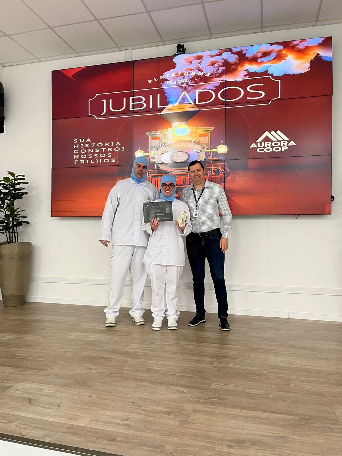 Para reconhecer esse marco tão especial, foi promovido um evento cuidadosamente preparado, com atenção aos detalhes e muito carinho, refletindo o respeito e a valorização que a Aurora Coop tem por seus colaboradores. Mais de 60 colaboradores foram homenageados, em uma cerimônia que contou com a presença do gerente Gustavo e de todos os gestores diretamente envolvidos.