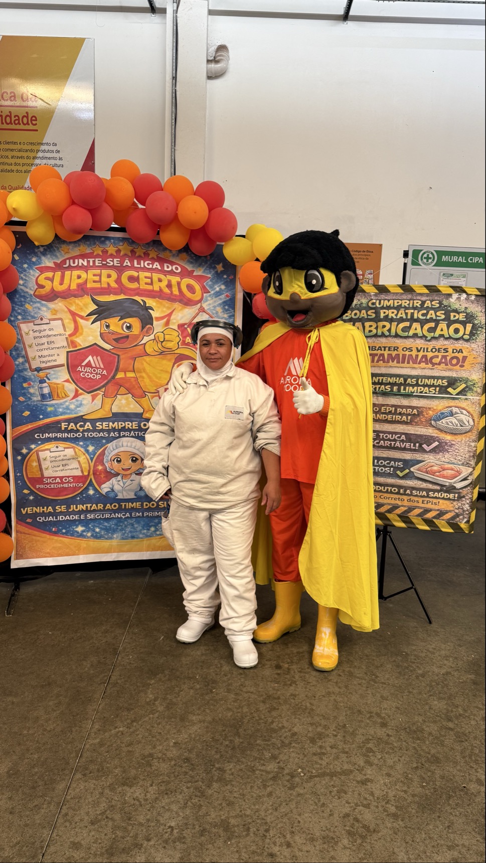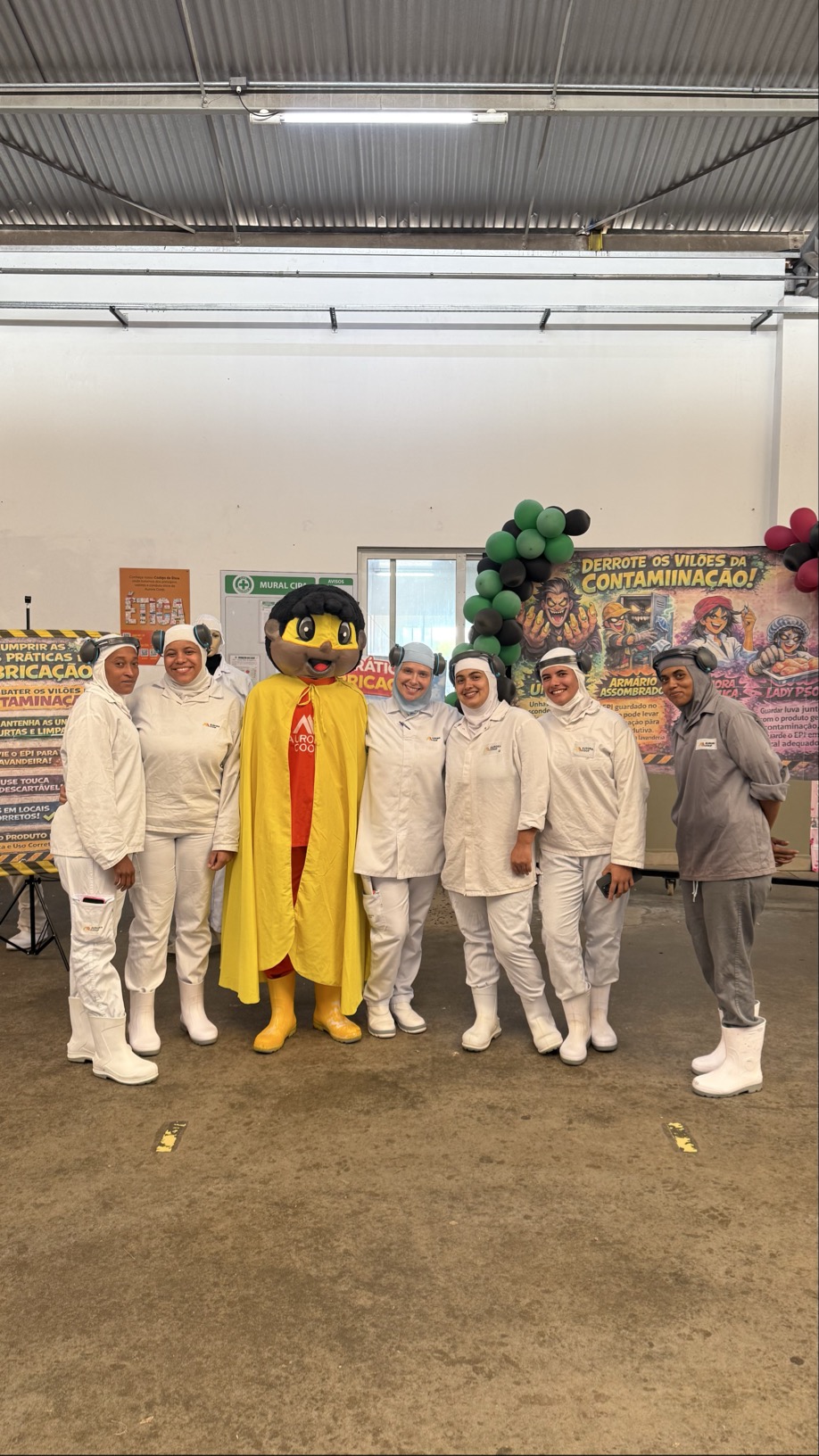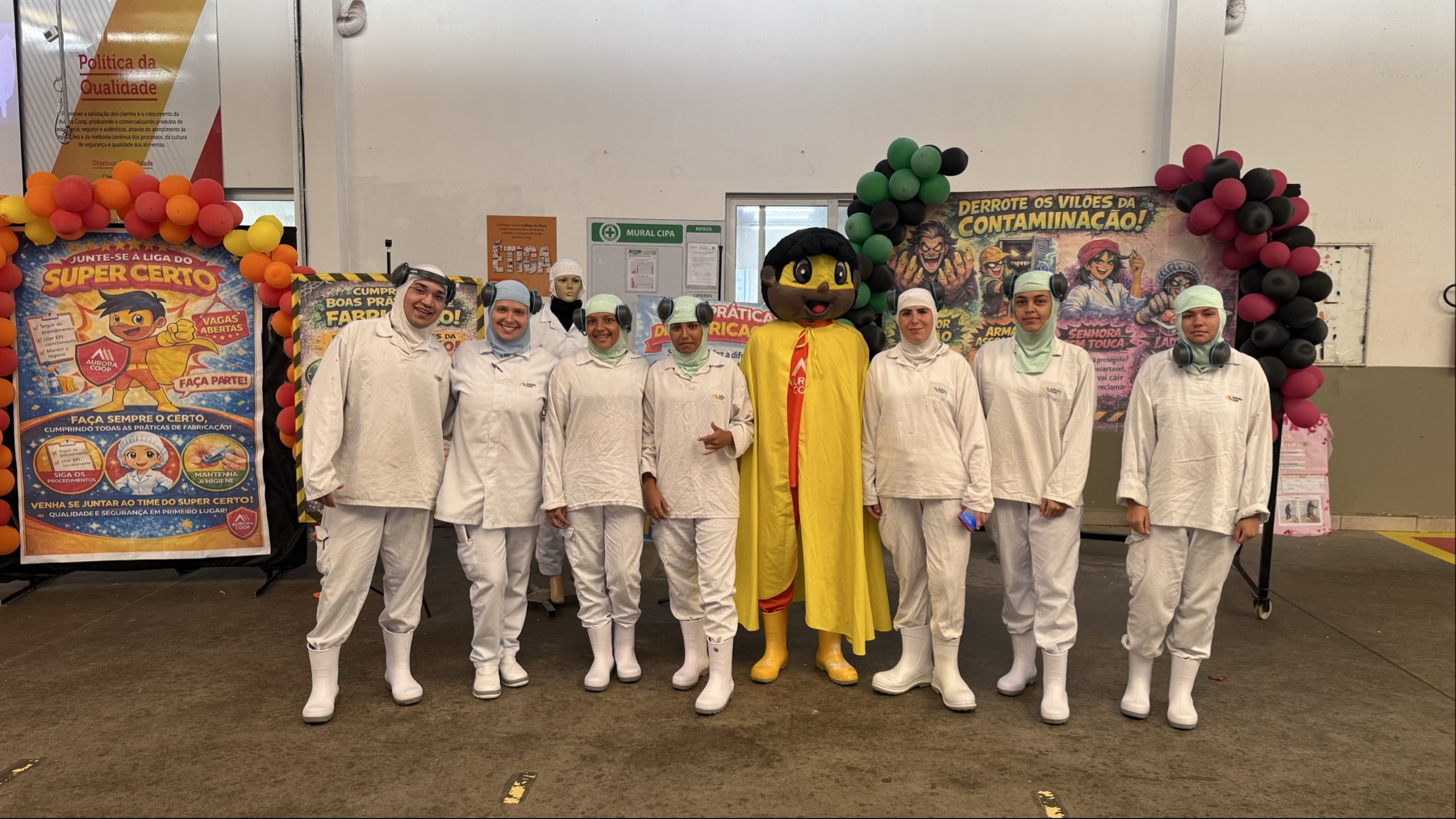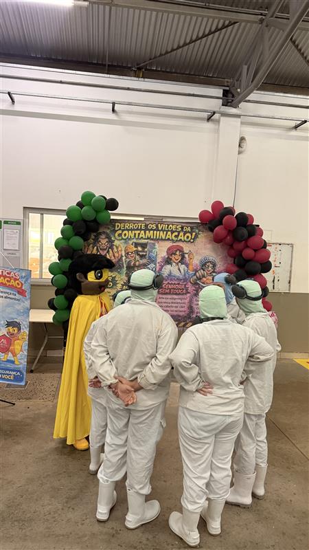 A atividade apresentou alguns “vilões da contaminação”, que precisavam ser derrotados pelo mascote “Super Certo”, incentivando os colaboradores a fazerem o certo sempre, cumprindo rigorosamente as normas de BPF e eliminando possíveis fontes de contaminação durante o processo produtivo.