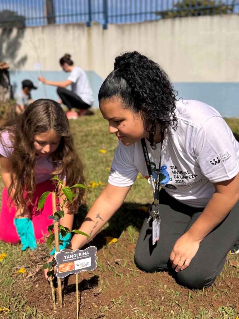 Em celebração ao Dia Mundial da Limpeza, o Frigorífico Aurora Castro (FAC), em parceria com seus voluntários, promoveu em 19 de setembro uma ação inspiradora e sustentável: o plantio de 16 mudas de árvores frutíferas na Escola Municipal Prof. Elsa Macedo. A iniciativa contou com o apoio essencial da Secretaria Municipal de Educação de Castro/PR e da Fundação Aury Luiz Bodanese, reforçando o compromisso coletivo com a preservação ambiental e o desenvolvimento comunitário.