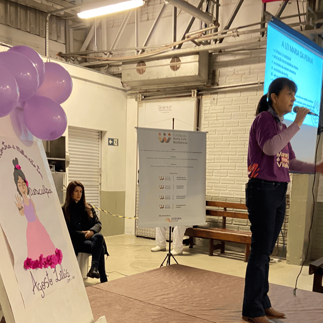 Em alusão ao Agosto Lilás, mês dedicado à conscientização pelo fim da violência contra a mulher, a unidade FAMH promoveu uma ação especial com palestras informativas nos dois turnos voltadas a todos os públicos da empresa. O evento contou com a presença da equipe organizadora do Movimento Lilás, cujo o tema central do movimento é: Maravilha é viver sem violência, que trouxe reflexões importantes sobre o enfrentamento à violência doméstica e familiar.