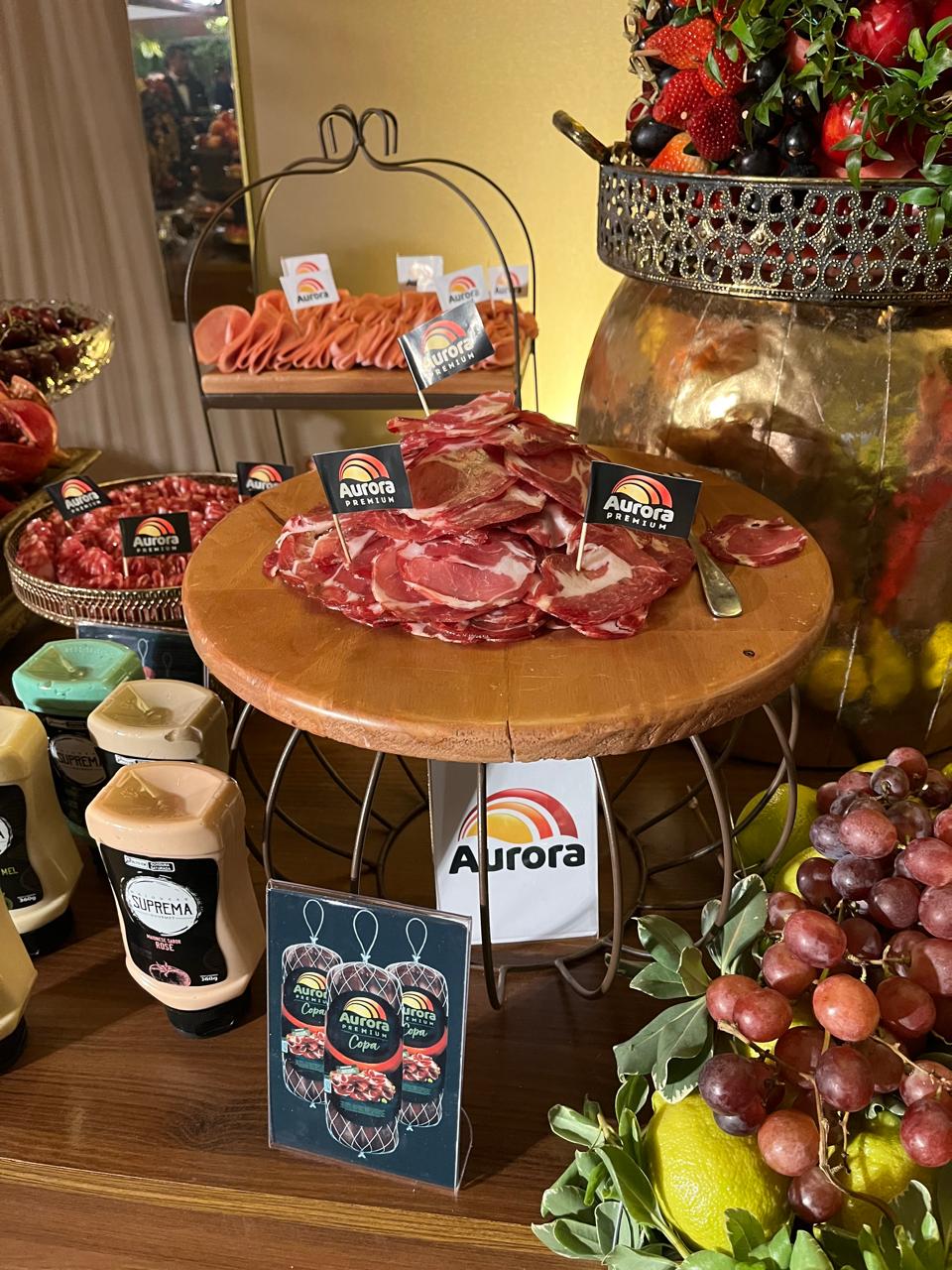 Logo na entrada do evento, os convidados foram recepcionados por um expositor inflável da Aurora, que se tornou um ponto de destaque ao longo da programação. Além disso, a marca apresentou uma elegante mesa de frios, que chamou atenção pelo portfólio premium composto por fatiados Aurora Premium, queijos, doce de leite e requeijão, produtos que enfatizam a qualidade e a tradição da marca.