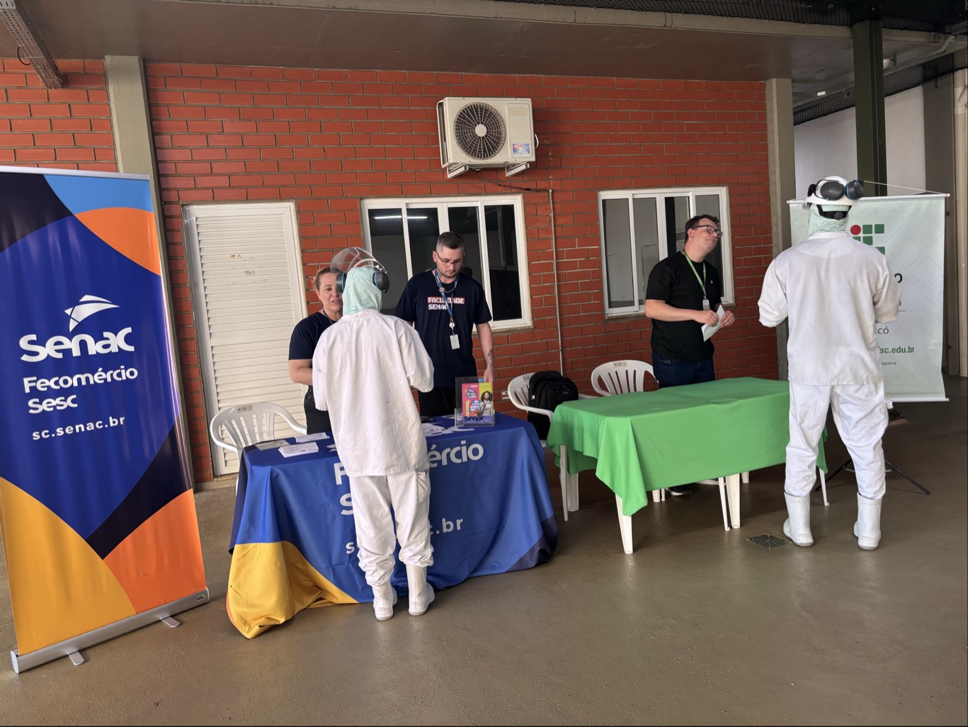 Na terça-feira, dia 03 de fevereiro, o SENAI esteve presente na unidade e apresentou diversas oportunidades de cursos voltados ao desenvolvimento técnico e profissional. Um segundo momento foi organizado com o IFSC e SENAC, no dia 05 de fevereiro, as instituições compartilharam suas possibilidades de formação, reforçando que sempre é tempo de aprender, evoluir e ampliar horizontes.