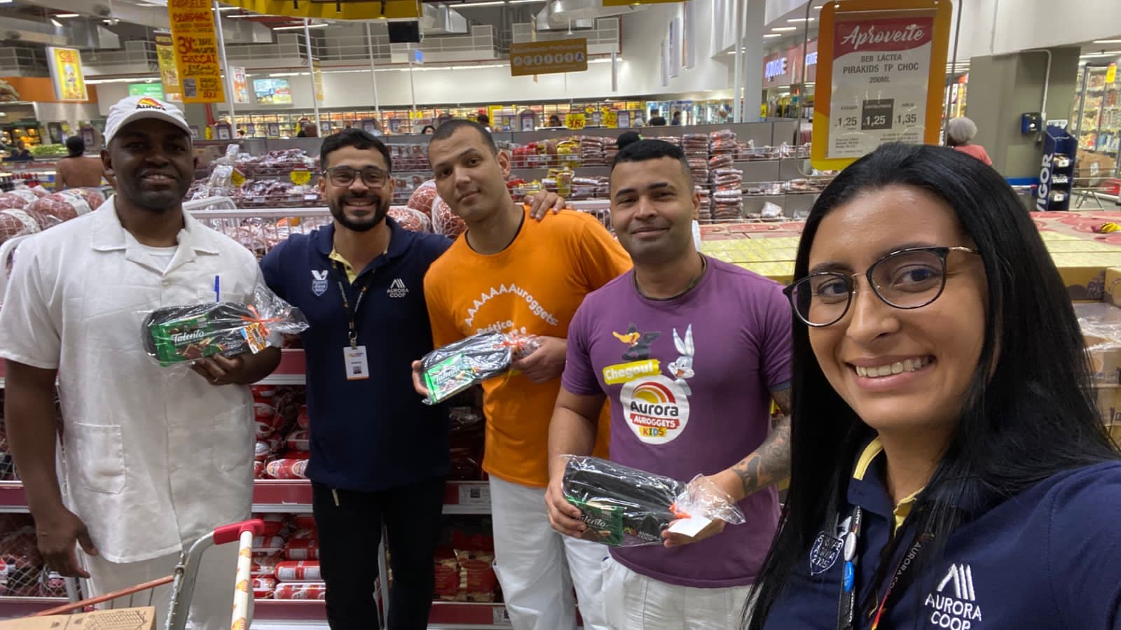 Em comemoração ao Dia do Promotor de Vendas, dia 23 de agosto, o time de trade marketing das Unidades de Vendas Aurora Coop Rio de Janeiro organizou uma ação especial em uma loja. O momento antecipou a celebração, foi realizado no dia 22 e contou com a participação dos setores de vendas, gestão de pessoas, logística e administrativo.