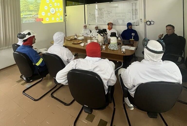 O encontro proporcionou um espaço aberto para troca de ideias, esclarecimento de dúvidas e sugestões, reforçando o compromisso da Aurora Coop com a escuta ativa e a valorização das pessoas. Além do diálogo, os participantes também desfrutaram de um momento de confraternização com a degustação de produtos Aurora, fortalecendo os laços entre as equipes.