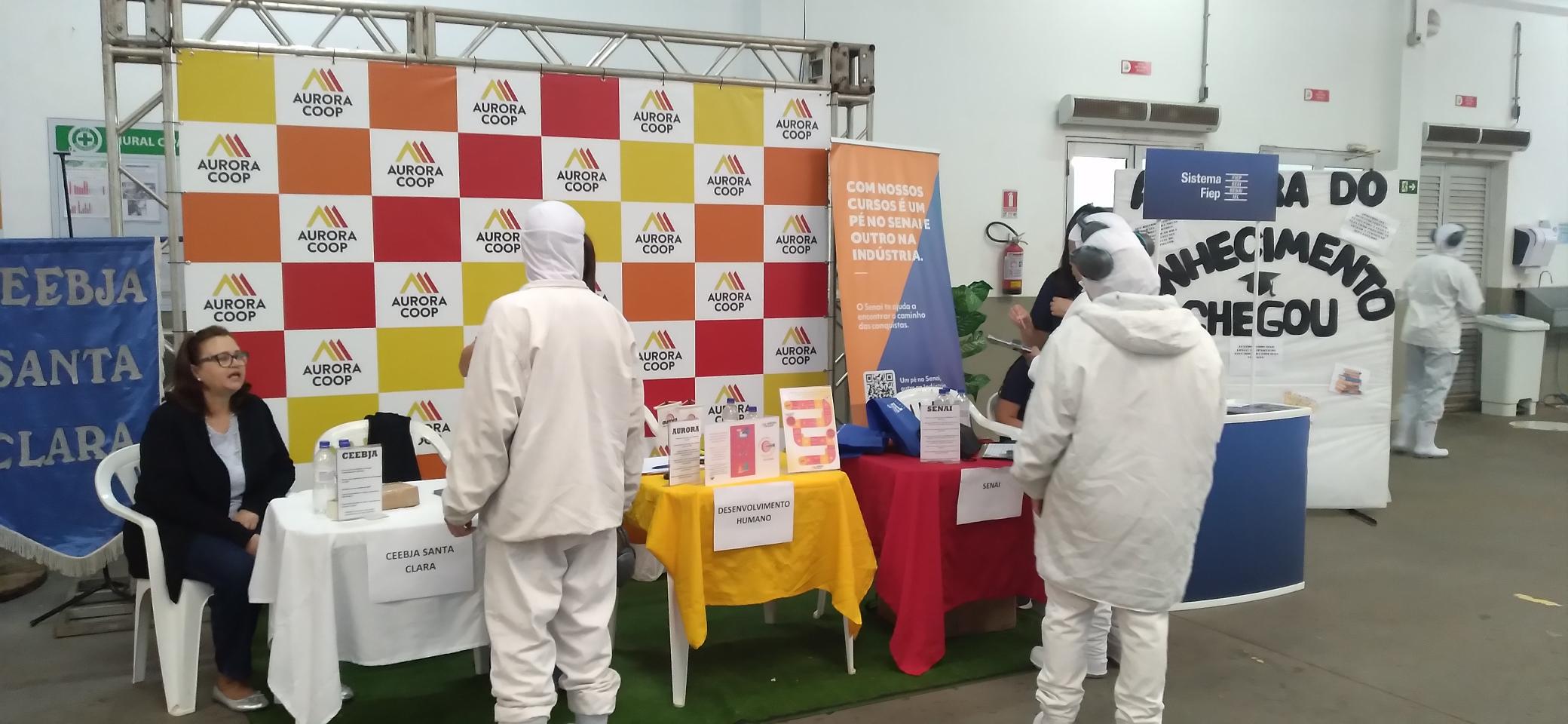 O Frigorífico Aurora Coop Mandaguari (FAMA), através do setor de desenvolvimento humano, realizou uma parceria com o SESI/SENAI da região e a Escola CEEBJA Santa Clara, para um momento de incentivo de conclusão dos estudos com os colaboradores: a Feira do Conhecimento. A equipe realizou a divulgação e ficou à disposição para tirar dúvidas, tanto de quem tem interesse em terminar os estudos ou ainda aqueles que gostariam de iniciar um curso técnico para agregar ao currículo.
