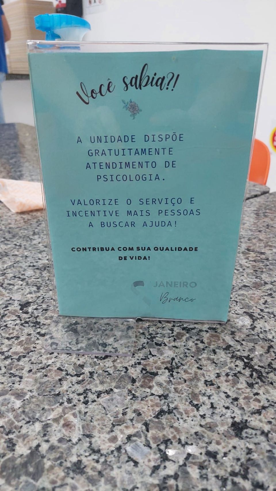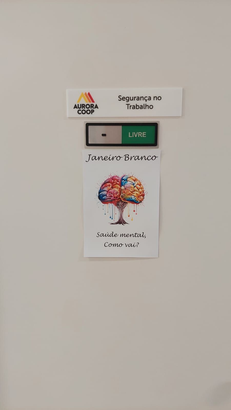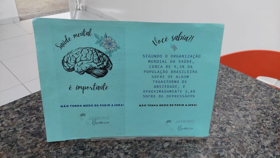 Também foi confeccionado um mural com a figura central de um cérebro humano e ao redor alguns pensamentos negativos que são gerados a cerca da depressão ou outras doenças psíquicas. Foram criados displays para as mesas do restaurante e identificação das portas dos setores de apoio: gestão de pessoas, analista social, segurança do trabalho e SESMT, para estimular a busca por ajuda e promover o bem-estar.
