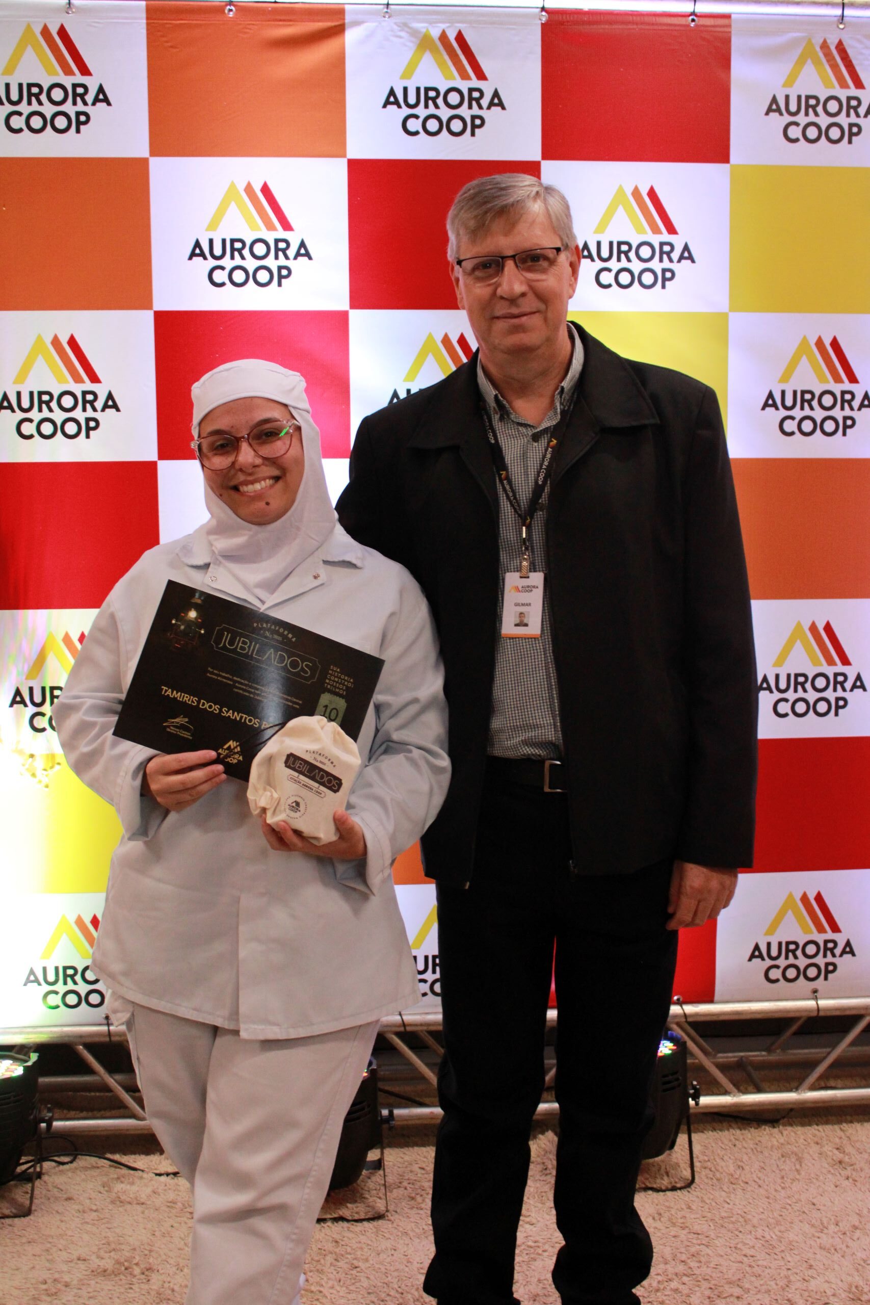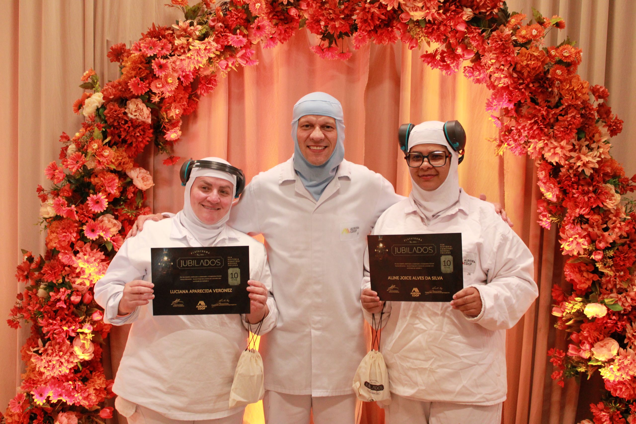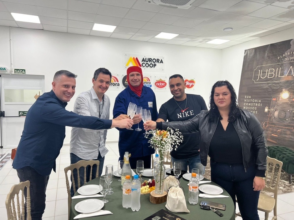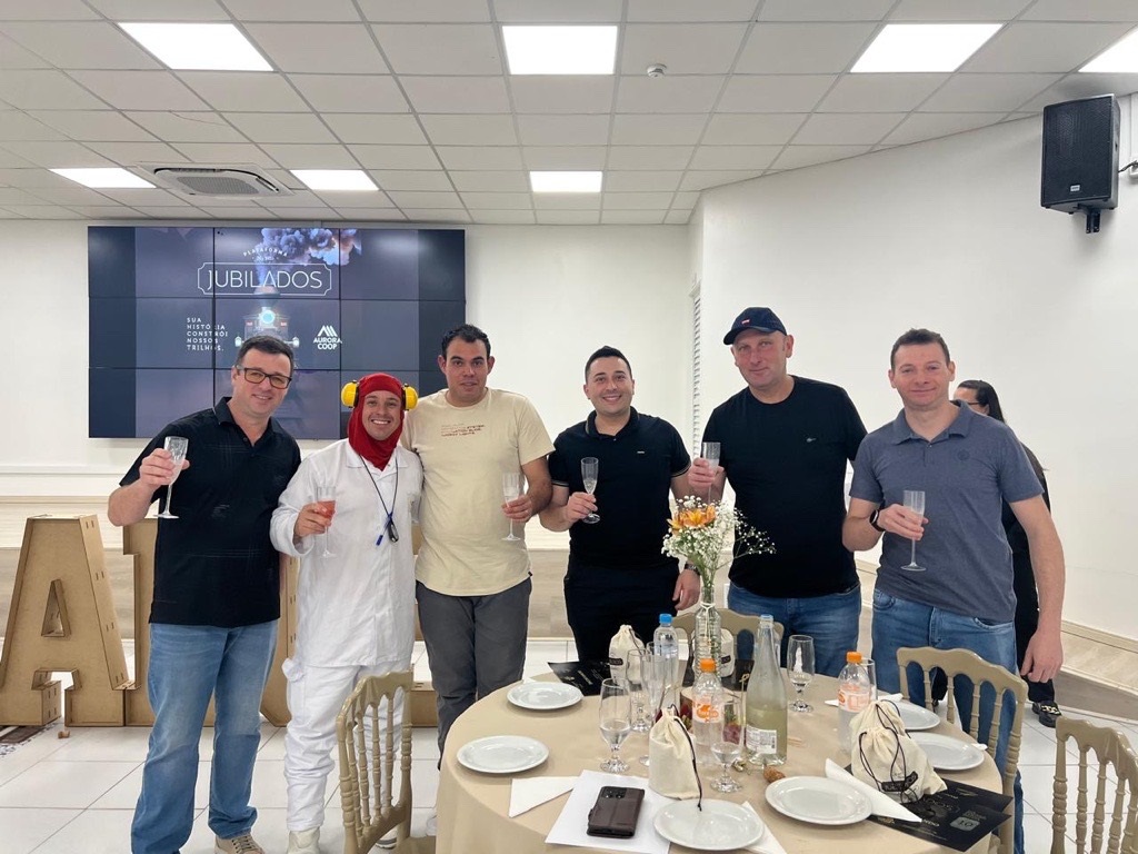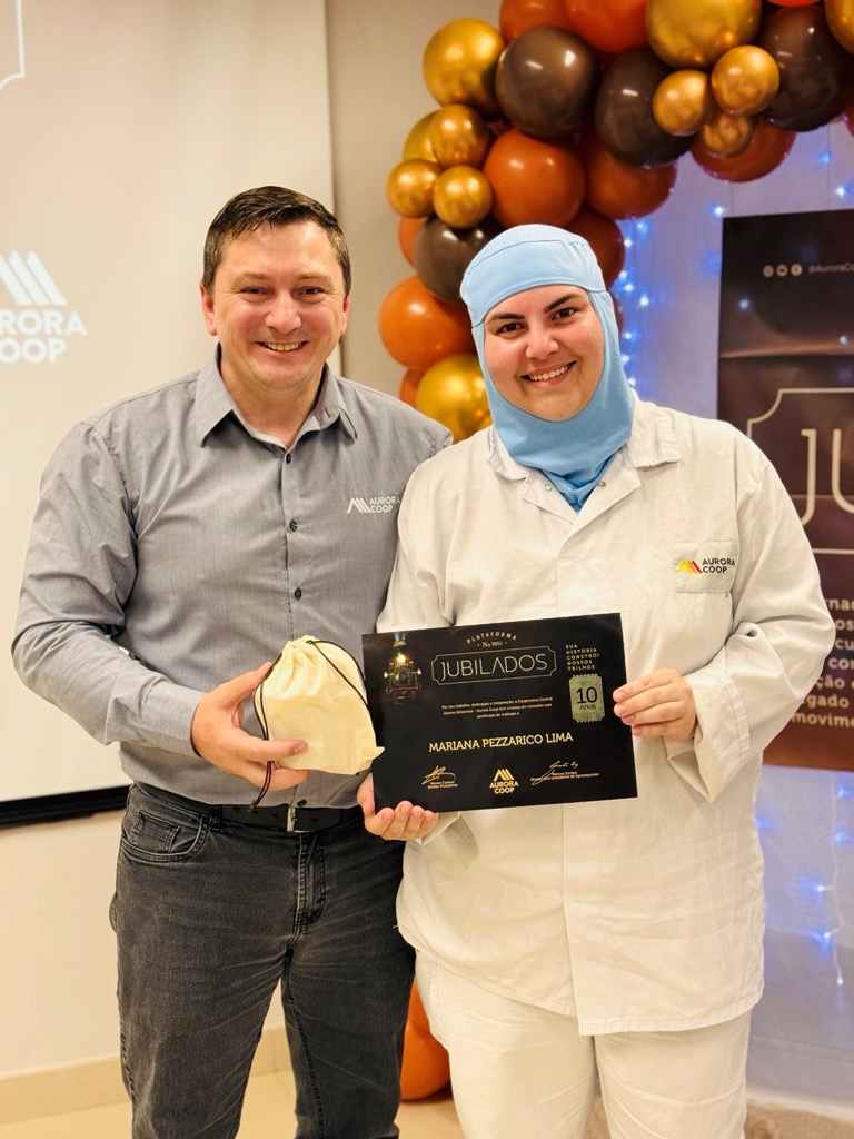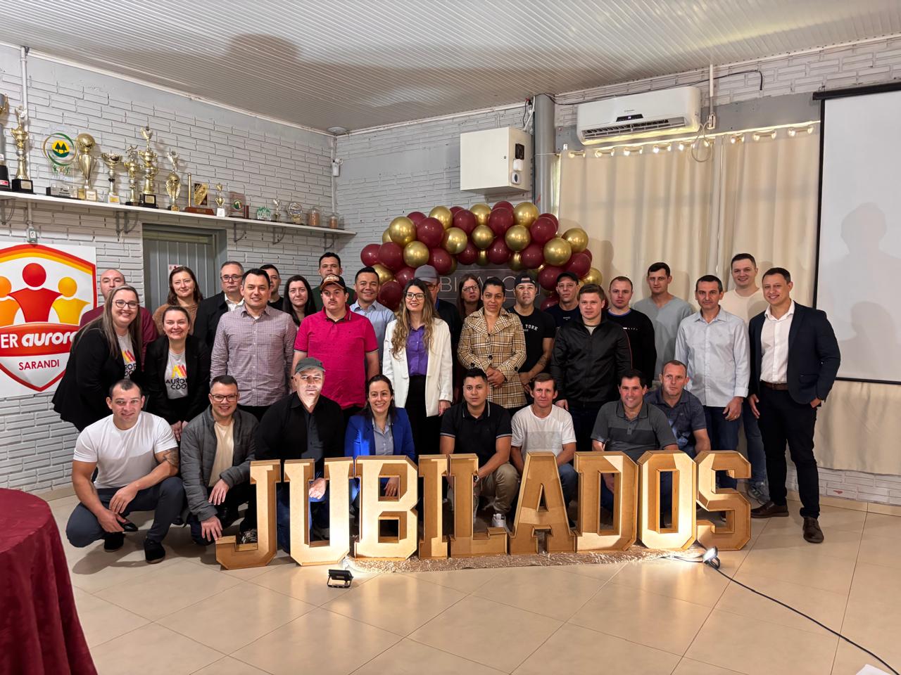 As homenagens também aconteceram em Erechim/RS (FAER I e FAER II), Guatambu/SC (FAG), Itajaí/SC, Joaçaba/SC (FAJO) e Mandaguari/PR (Fábrica de Rações e FAMA). Em Itajaí, a comemoração foi ainda mais comovente com a participação online do jubilado e supervisor administrativo da Aurora Coop Shangai, Dhanvantari da Silva Stuani. Nas unidades de Mandaguari foi feito um evento único, que uniu os mais de 300 jubilados da fábrica e do frigorífico para celebrar o momento pela primeira vez – em 2025 as unidades também completaram 10 anos de história.