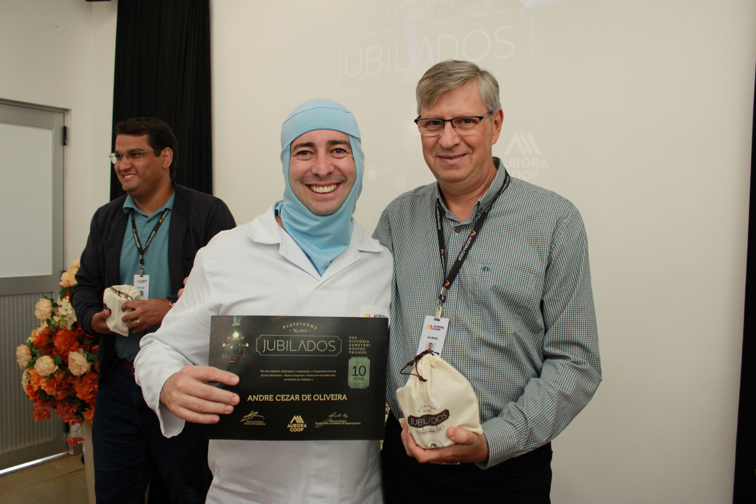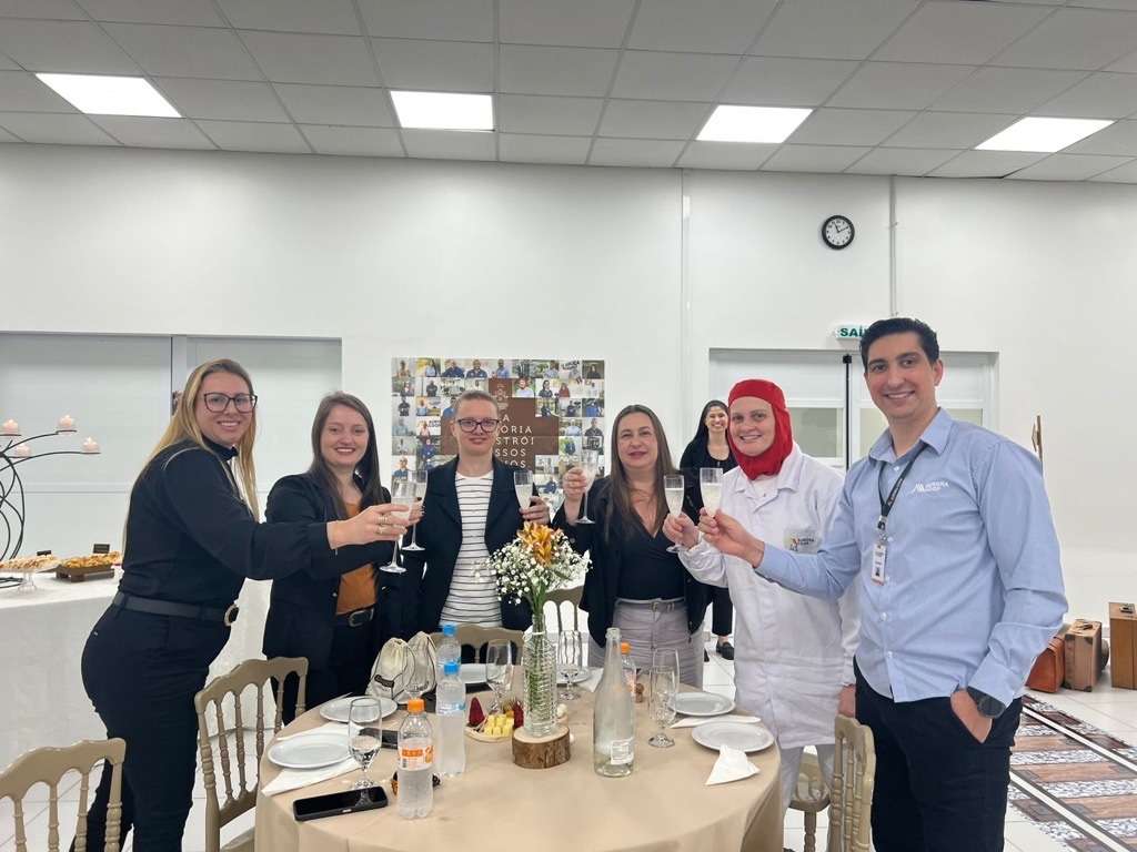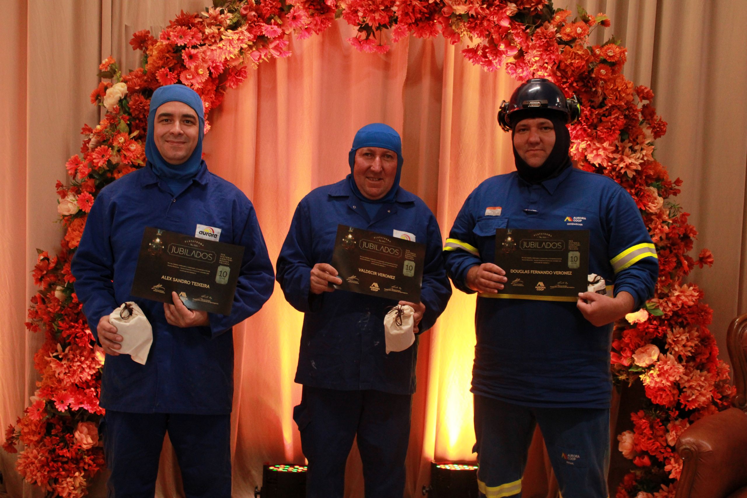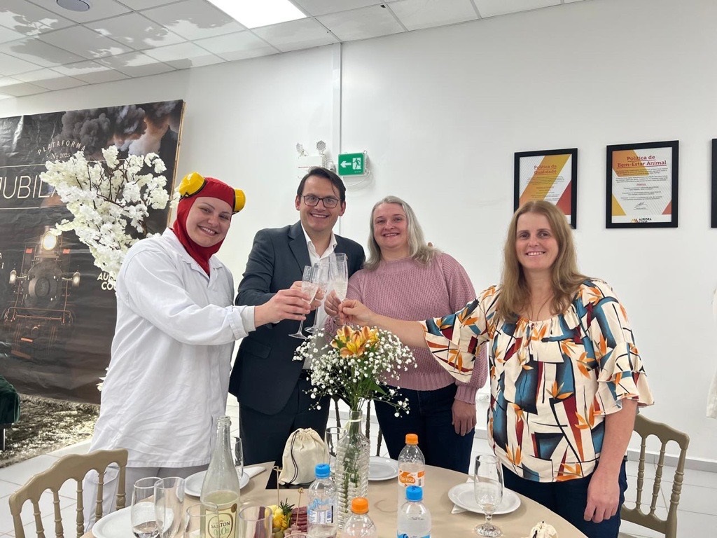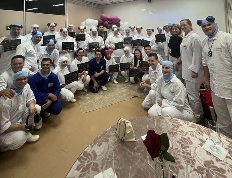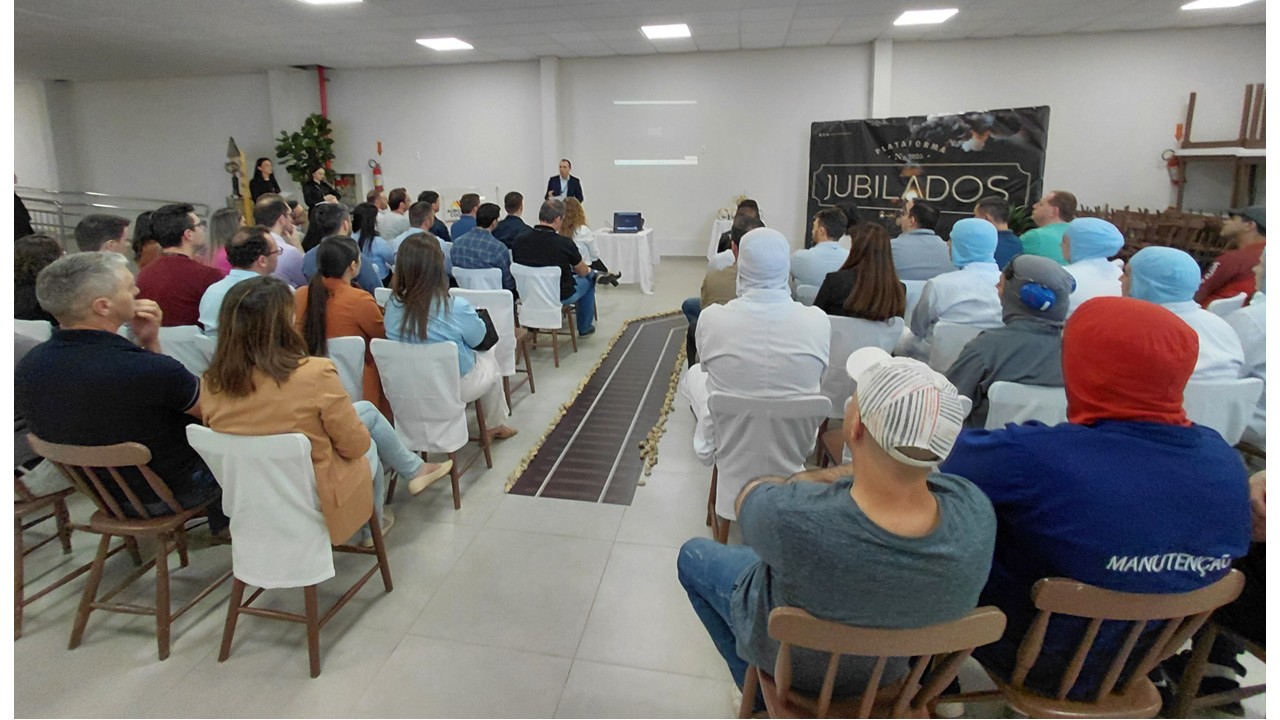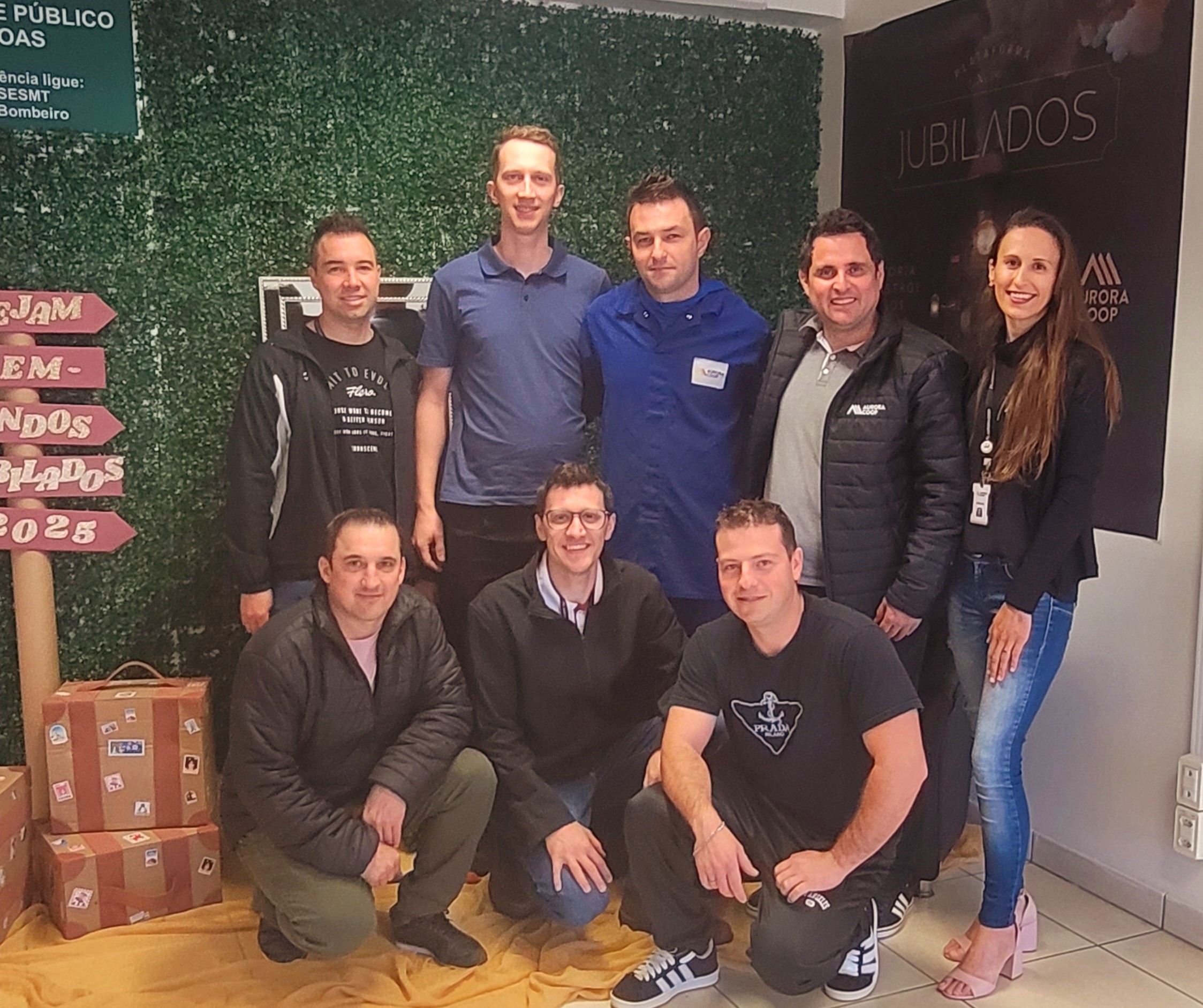 As homenagens também aconteceram em Erechim/RS (FAER I e FAER II), Guatambu/SC (FAG), Itajaí/SC, Joaçaba/SC (FAJO) e Mandaguari/PR (Fábrica de Rações e FAMA). Em Itajaí, a comemoração foi ainda mais comovente com a participação online do jubilado e supervisor administrativo da Aurora Coop Shangai, Dhanvantari da Silva Stuani. Nas unidades de Mandaguari foi feito um evento único, que uniu os mais de 300 jubilados da fábrica e do frigorífico para celebrar o momento pela primeira vez – em 2025 as unidades também completaram 10 anos de história.