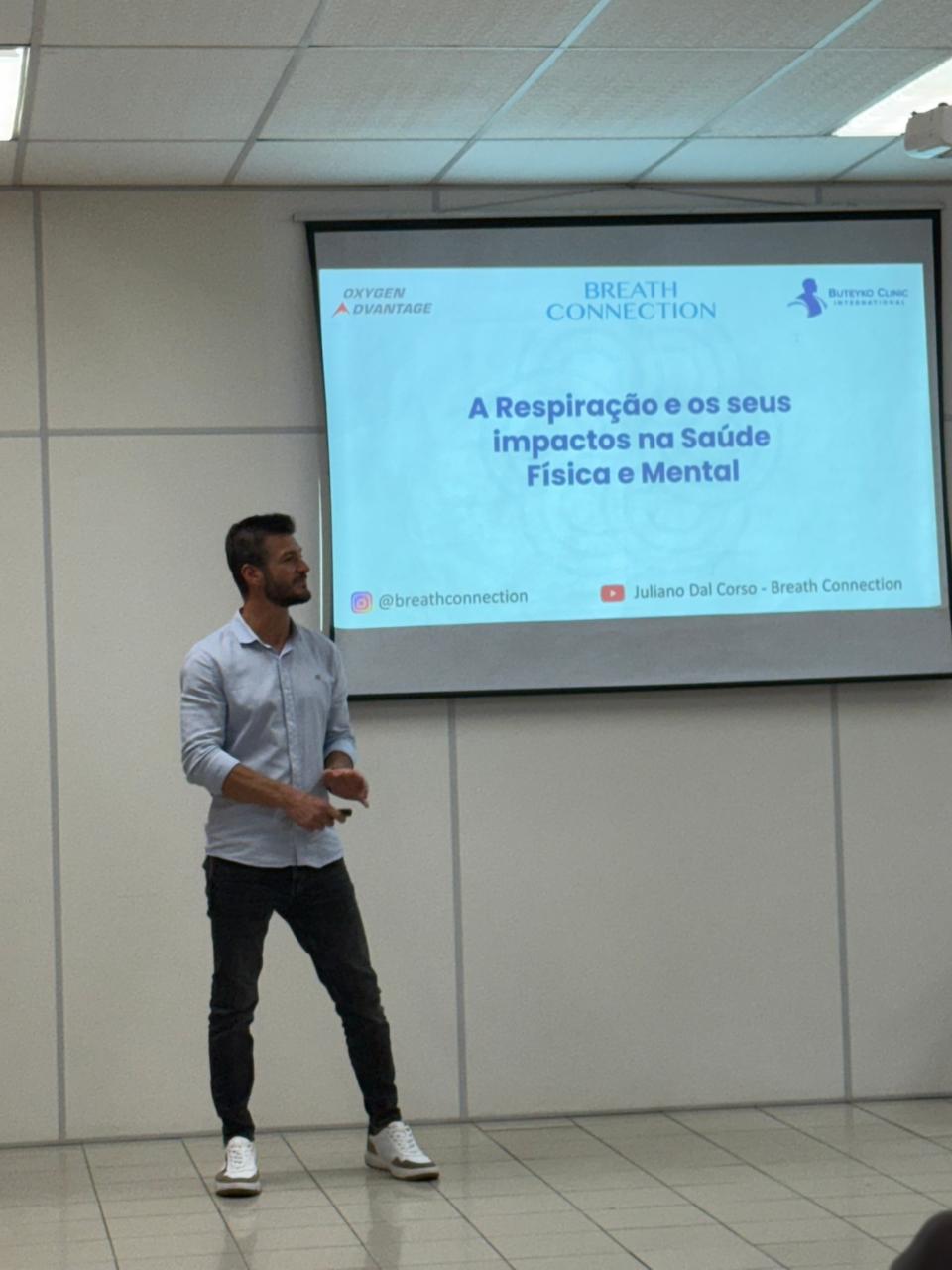 A atividade foi realizada no dia 23 de outubro e conduzida com o propósito de promover bem-estar integral, reforçando a importância da respiração consciente como aliada na gestão da saúde e das emoções, que fazem parte da rotina de líderes que atuam em ambientes de alta demanda.