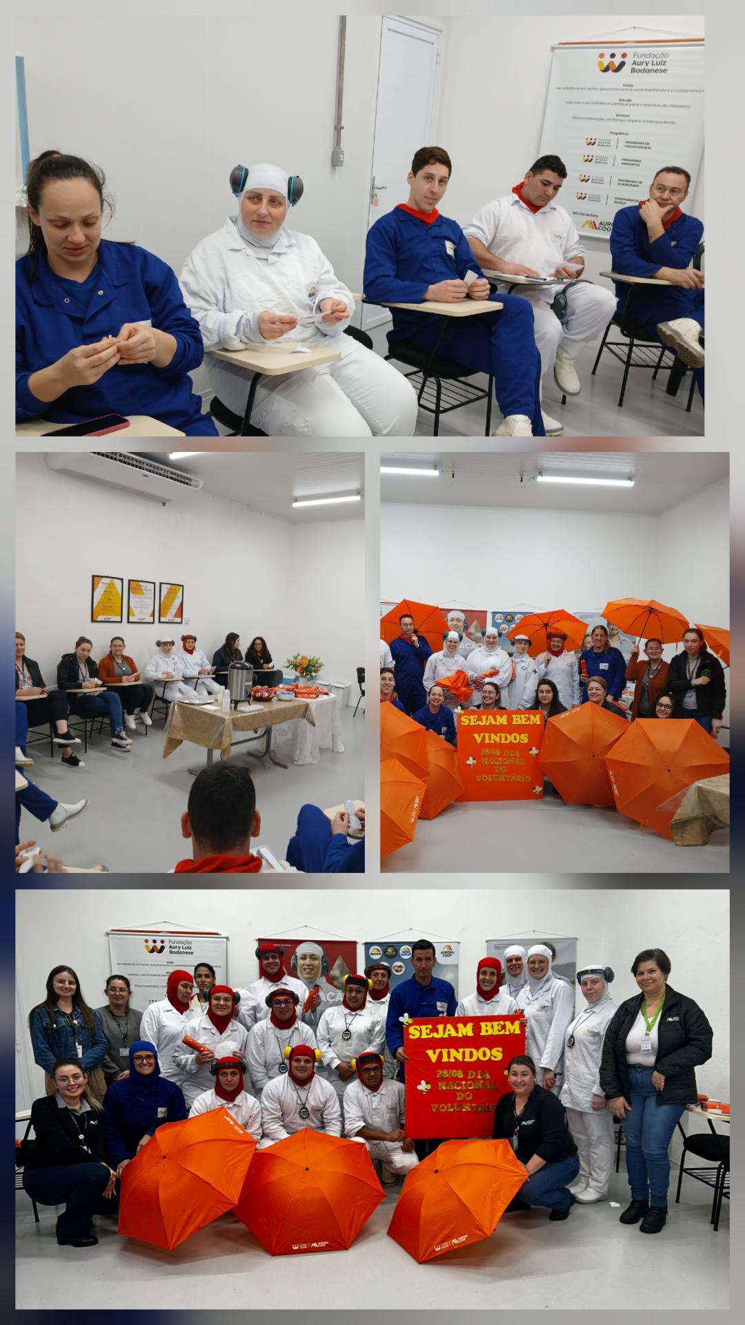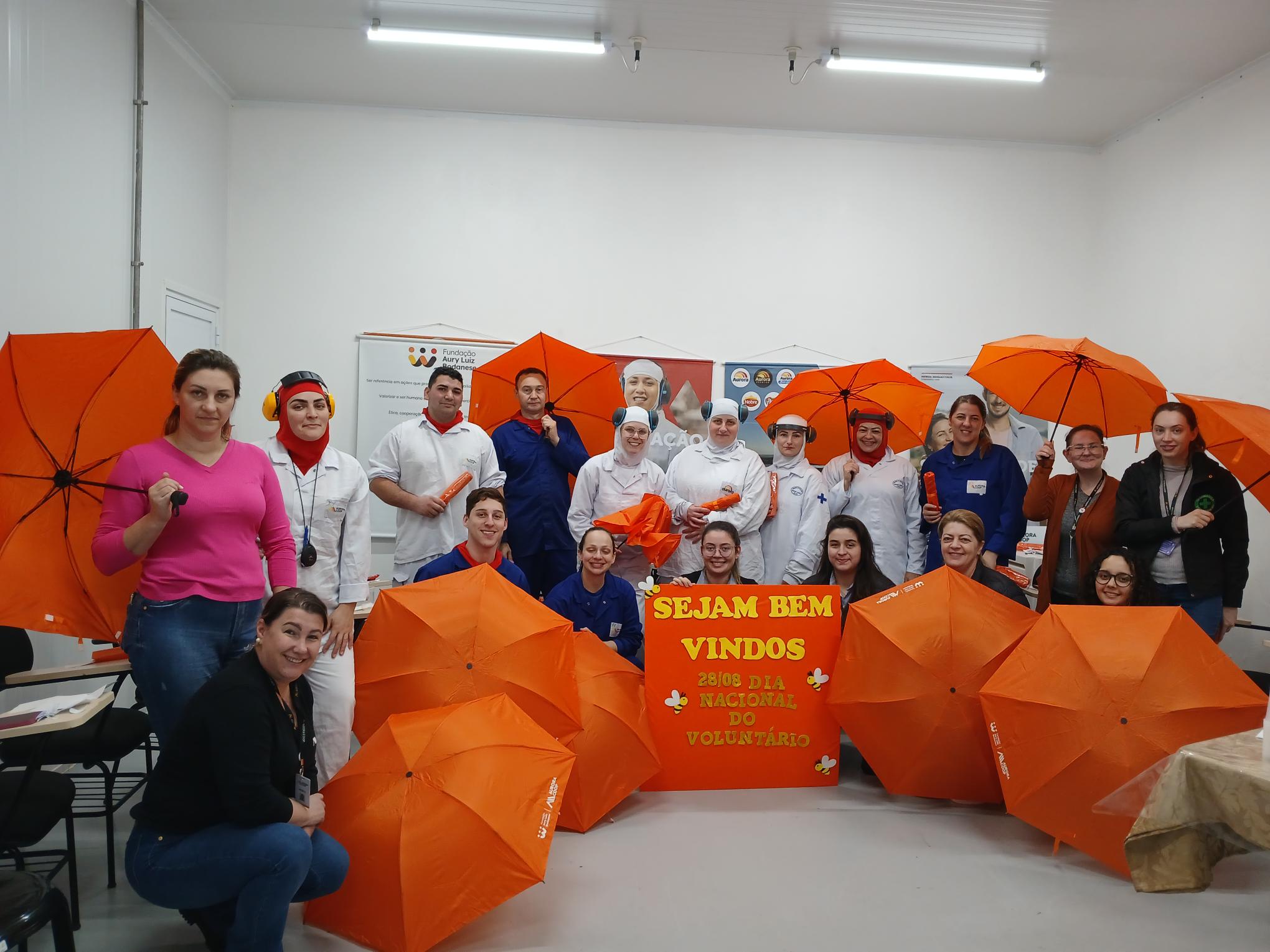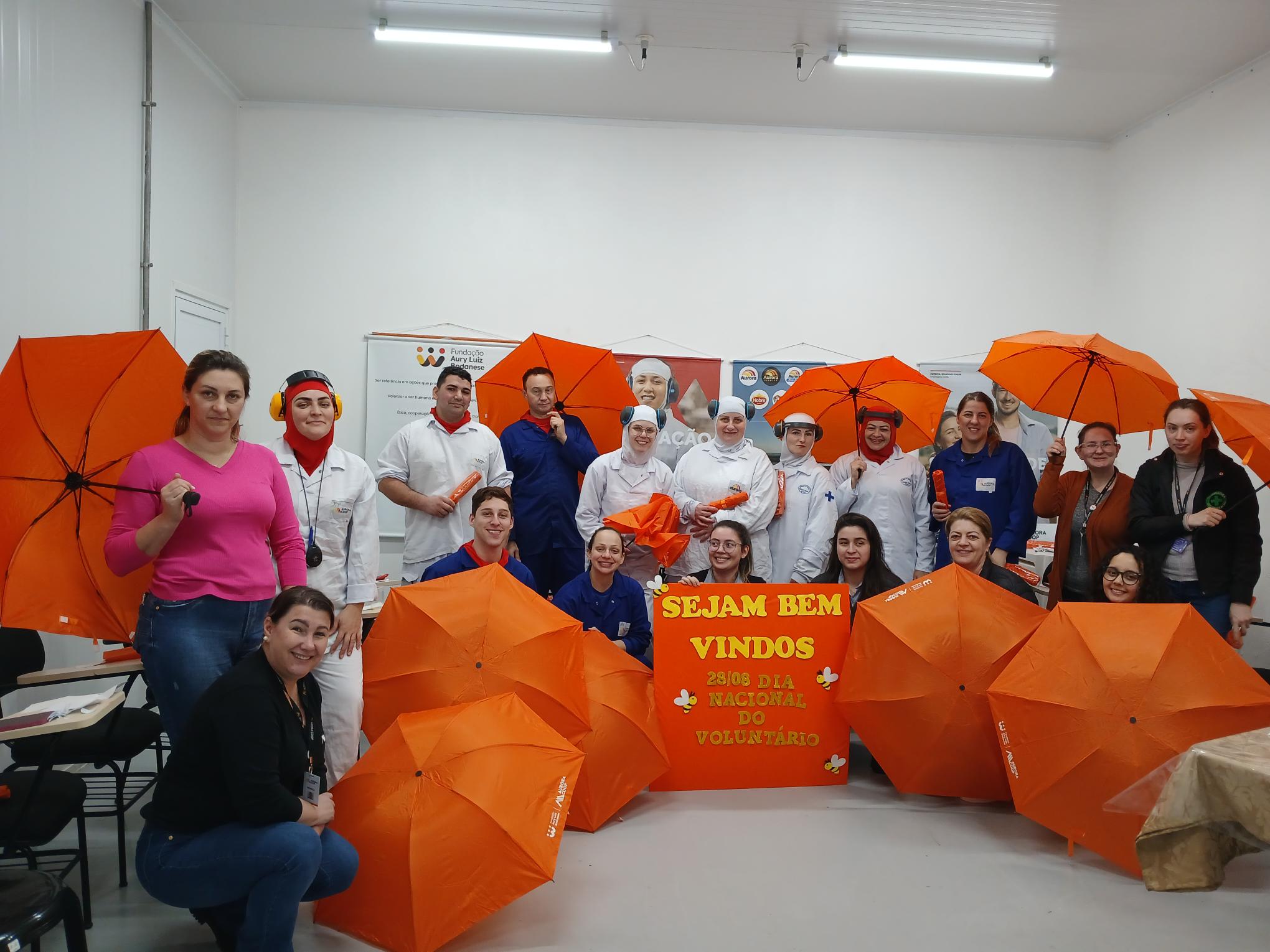 Para homenagear os voluntários, foi entregue brindes, coquetel e explanado sobre atividades realizadas e futuras, no FAX contamos com 333 voluntários com termo de voluntariado , que receberam boton e 57 voluntários com atividades em 2025, que receberam mais um brinde ( sombrinha)