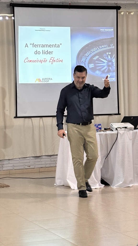 Encerrando o ano com motivação e aprendizado, os gestores do Frigorífico Aurora Coop Sarandi (FASA) participaram de uma palestra especial de fim de ano com o tema “Profissional Fera“. O encontro reuniu líderes de diferentes setores em um momento de reflexão, reconhecimento e fortalecimento da liderança. A atividade foi conduzida pelo Professor Machado, que trouxe uma abordagem dinâmica e inspiradora sobre o que significa ser um profissional destaque, capaz de enfrentar desafios e motivar equipes.