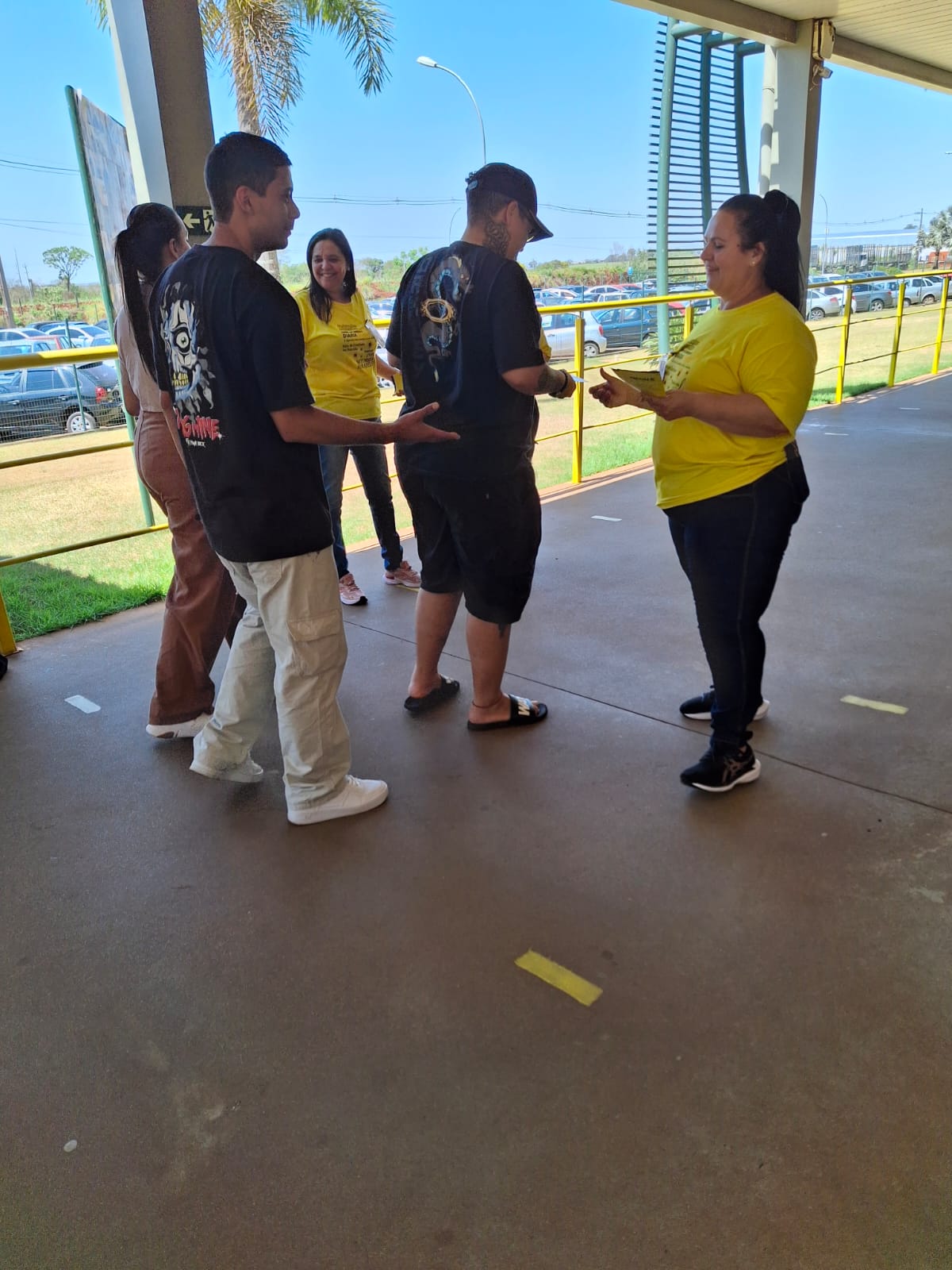 A ação aconteceu com a equipe técnica do CAPS – Psicólogas e Assistente Social que estiveram presente panfletando e acolhendo colaboradores.