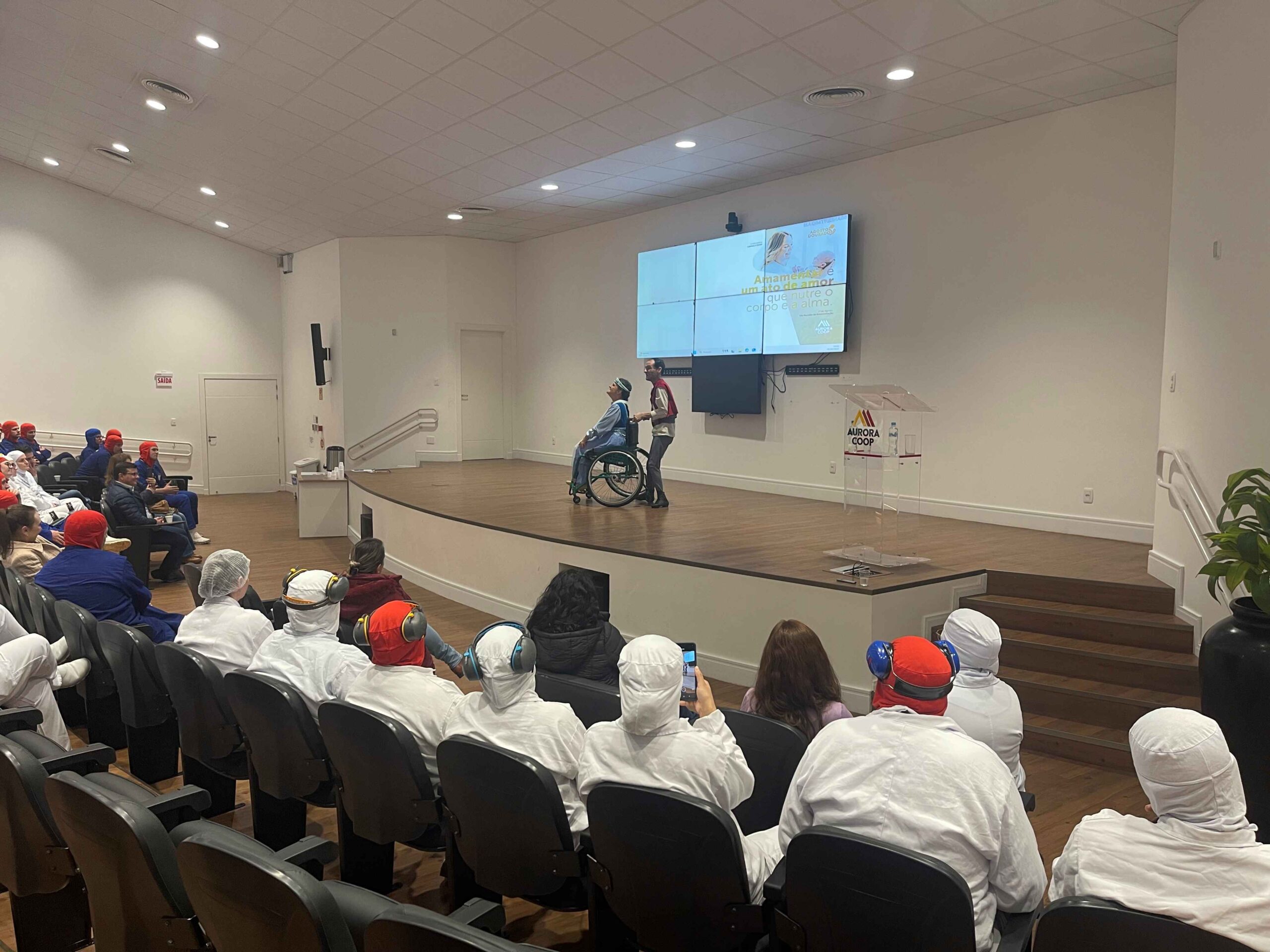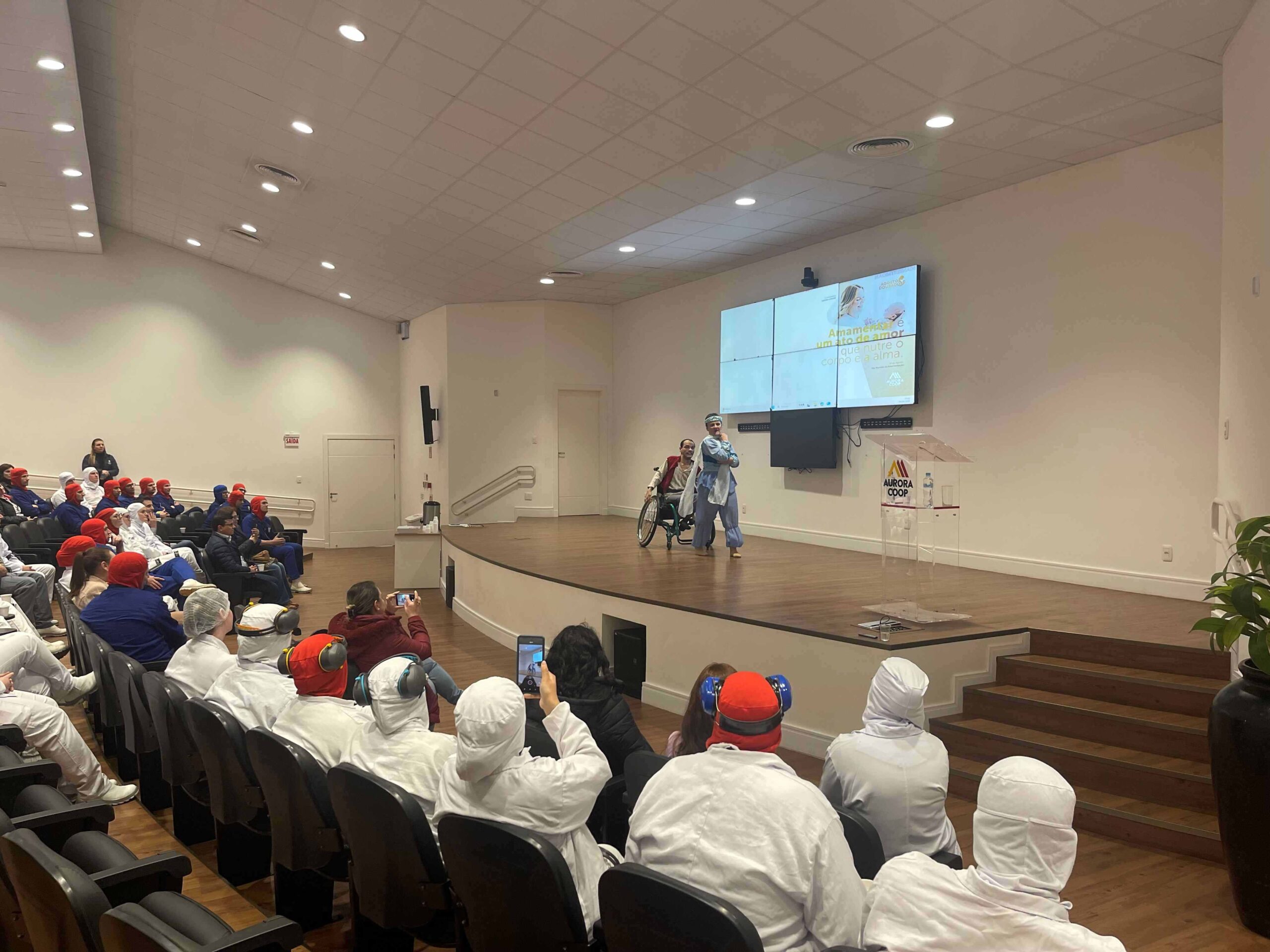 Durante nossa programação especial, tivemos a honra de receber a analista de Programas Sociais da Fundação Aury Luiz Bodanese, Gabriela Concolatto, que trouxe reflexões valiosas sobre diversidade e as potencialidades no mundo do trabalho. Sua fala reforçou a importância de reconhecer a força que existe em cada pessoa, valorizando talentos e trajetórias únicas.