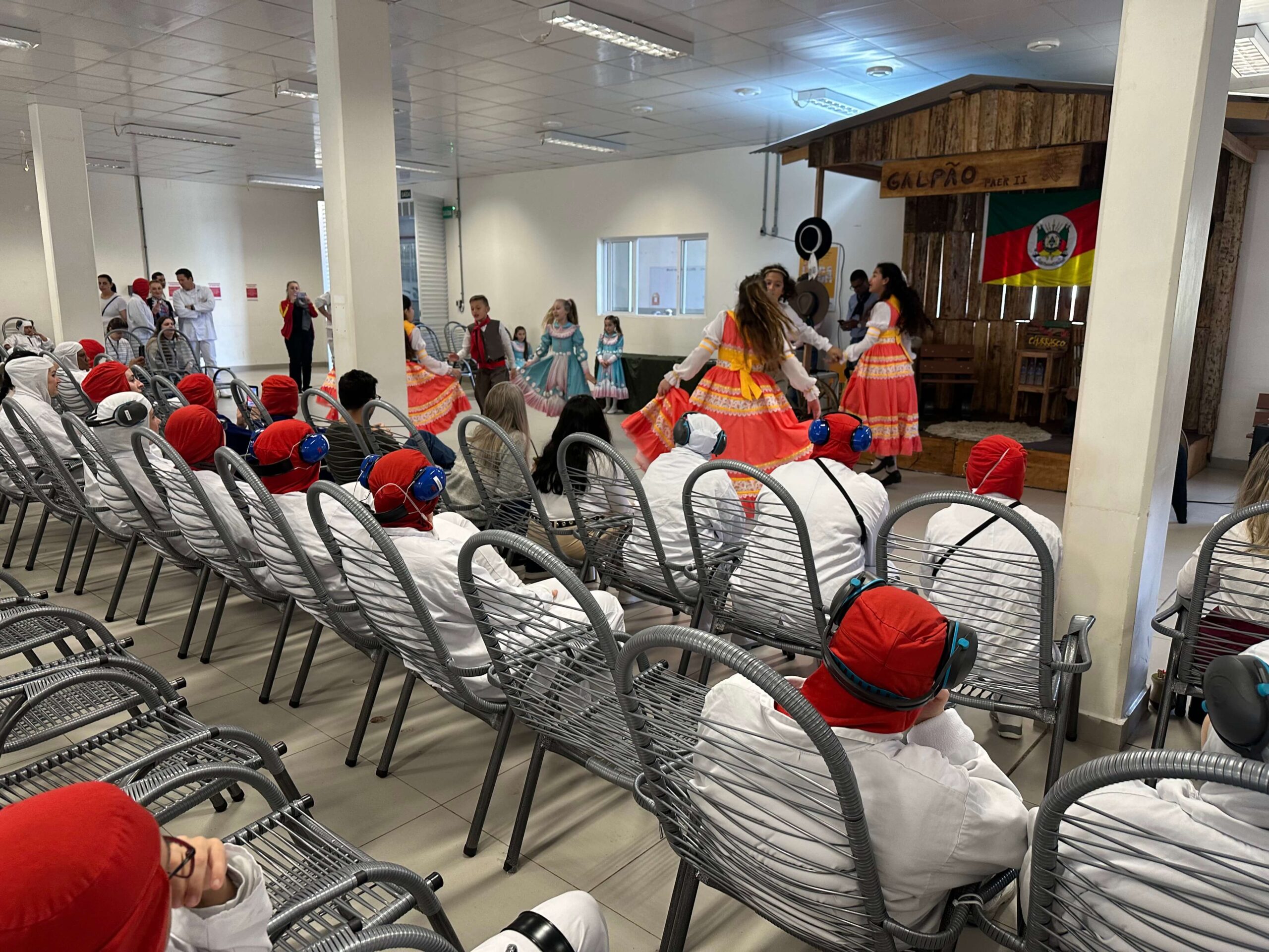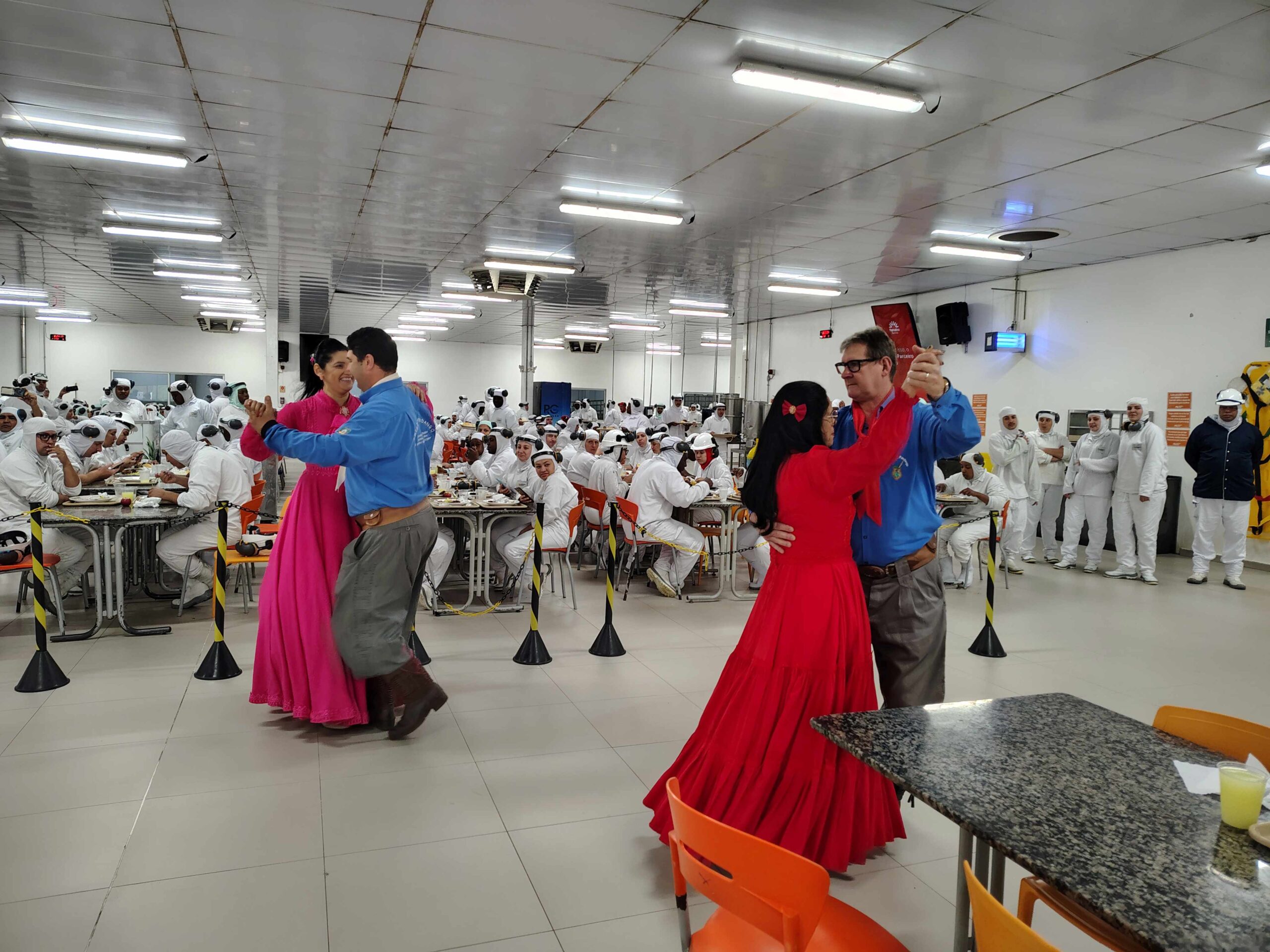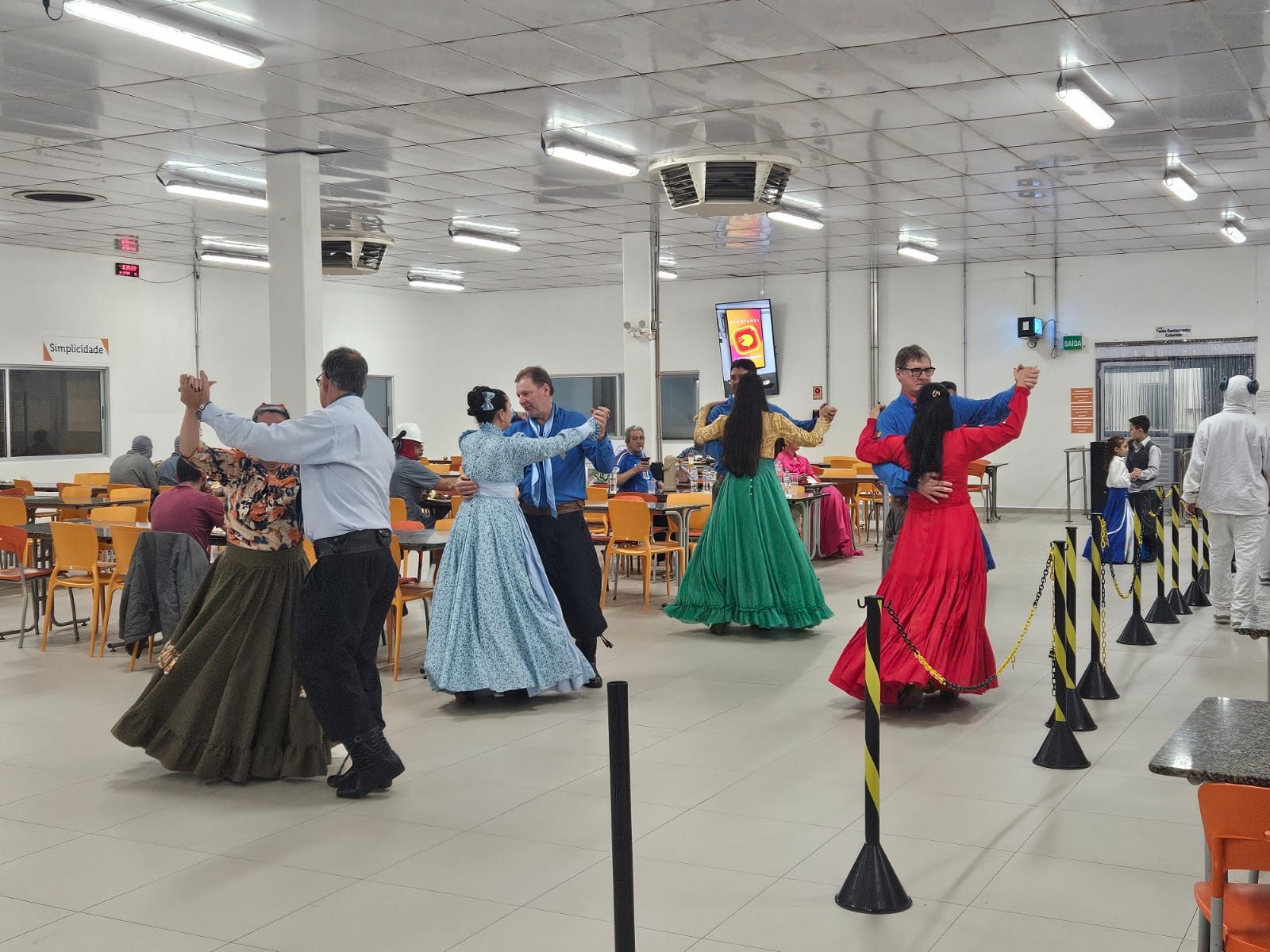 Por meio do Comitê de Comunicação do FACH I, foi realizada uma apresentação cultural no restaurante da unidade, com danças gauchescas interpretadas pelo grupo Amigos do Fandango de Chapecó. A atividade encantou os colaboradores e gerou engajamento. Para completar a celebração, foi preparada uma decoração e servido um cardápio especial com pratos típicos da culinária gaúcha.