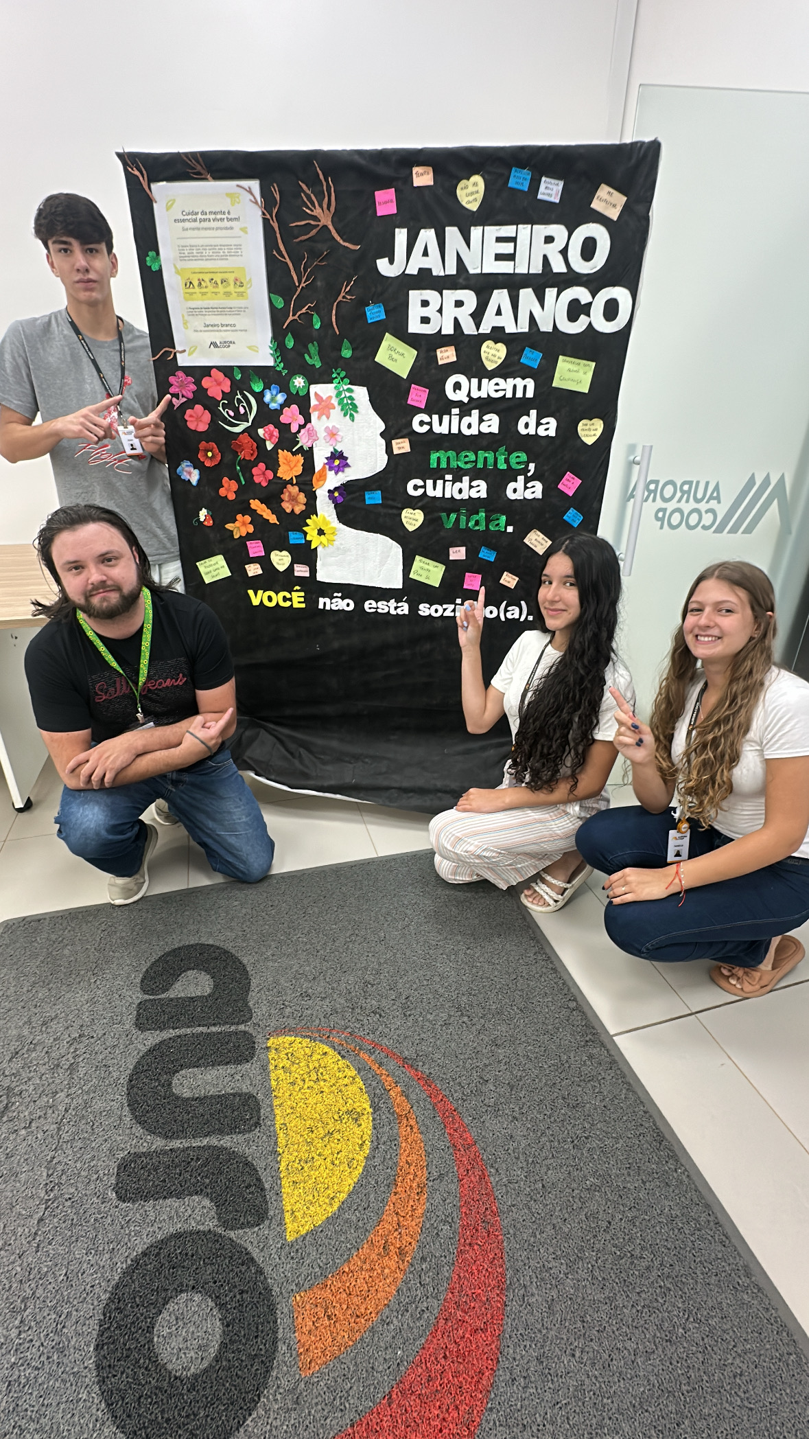 O Janeiro Branco é uma iniciativa para iniciar o ano com reflexão e planejamento, e para incentivar tais atitudes, a analista de gestão de pessoas do Centro Logístico Aurora Coop Chapecó (CD Sul), Letícia, fez uma roda de conversa com todos os colaboradores. A atividade foi realizada no dia 19 de janeiro e enfatizou o reconhecimento de necessidades emocionais, o fortalecimento de vínculos e a quebra de tabus em torno do tema e de expor os sentimentos.