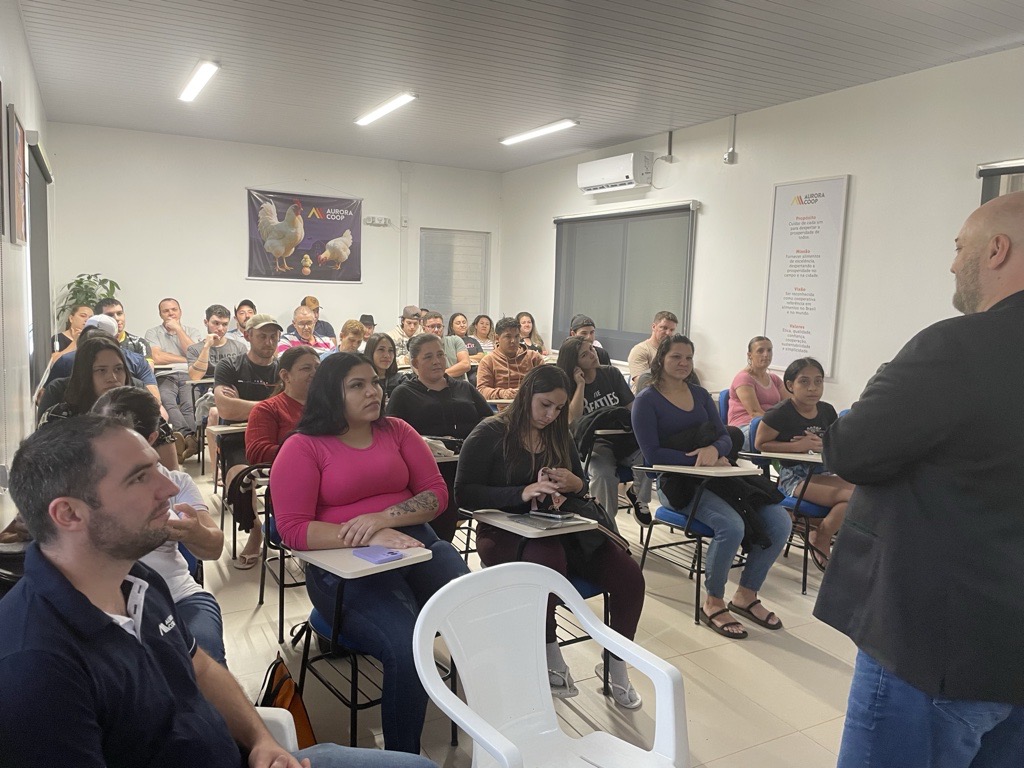 O Frigorífico Aurora Coop Mandaguari promoveu um momento de sensibilização com os gestores da unidade, com foco em saúde mental e gestão emocional. A atividade foi conduzida pela psicóloga Andrea, que destacou a importância dos gestores estarem emocionalmente saudáveis para conduzirem suas equipes de forma equilibrada, empática e assertiva. Os gestores foram convidados a realizar um exercício de autoavaliação, refletindo sobre a presença de sinais comuns relacionados à ansiedade, como alterações no sono, estresse excessivo e dificuldade de concentração. Como fechamento da atividade e em conexão com a temática abordada, os participantes receberam o livro do ano “O Poder da Autorresponsabilidade”, do autor Paulo Vieira.