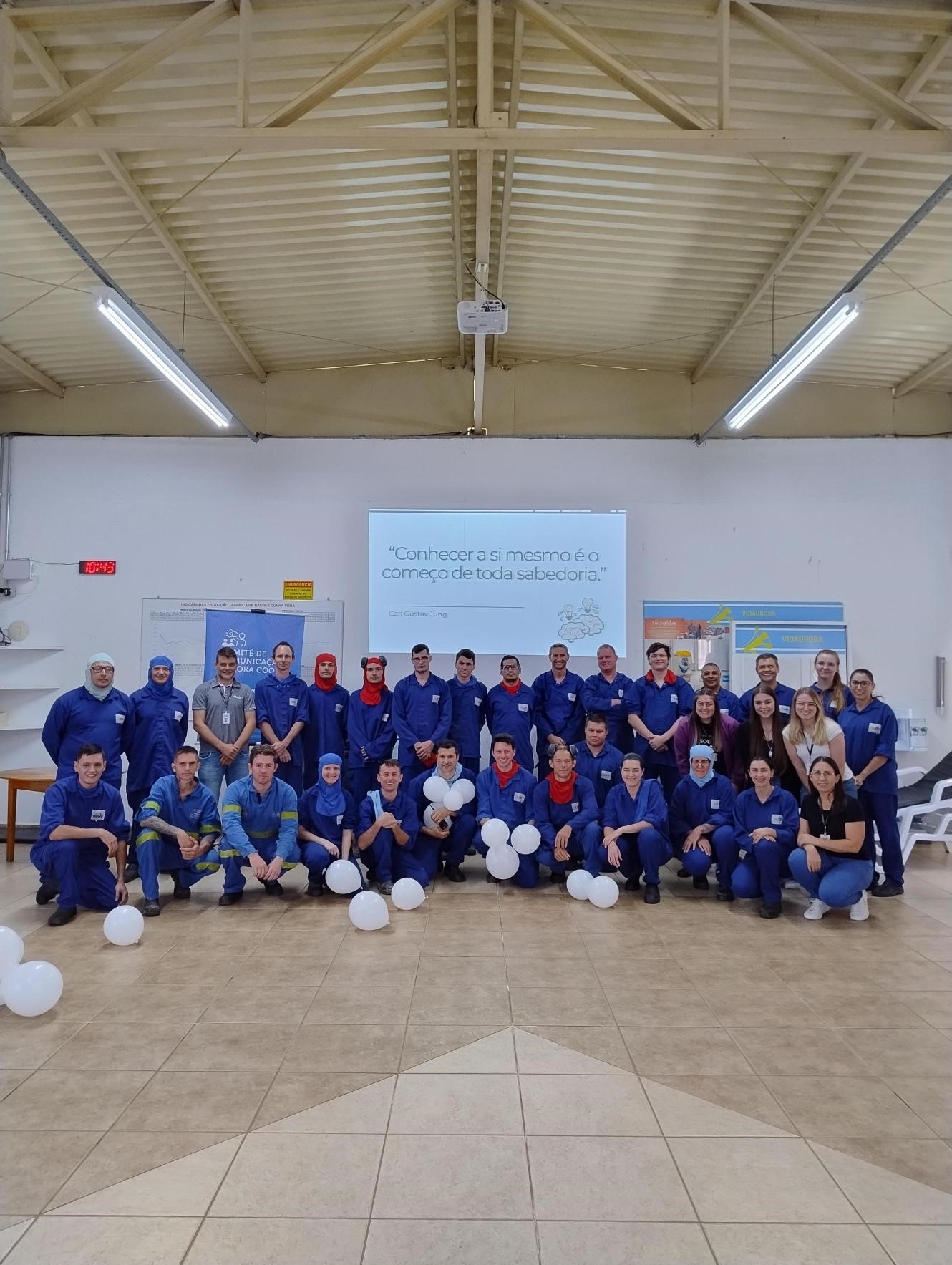 Com o objetivo de fomentar reflexões, promover diálogo e reforçar a importância de atitudes que contribuam para uma vida mais equilibrada e saudável, a Fábrica de Rações Aurora Coop Cunha Porã preparou uma atividade com troca de experiências e orientações de como reconhecer sinais de esgotamento, lidar com situações de estresse e cultivar hábitos que favoreçam o bem-estar. A ação, realizada no dia 30 de janeiro, destacou a relevância da procura pelo apoio profissional e foi encerrada com uma mensagem de Carl Gustav Jung: “Conhecer a si mesmo é o começo de toda sabedoria”.
