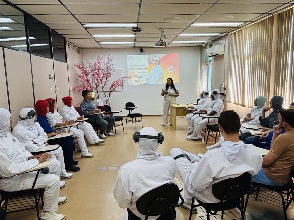 Nos dias 20 e 21 de janeiro, foram realizadas no Frigorífico Aurora Coop Erechim II (FAER II) três palestras especiais para reforçar a Campanha Janeiro Branco. As palestras foram conduzidas pela psicóloga ocupacional da unidade, Carla Chaves. Os momentos promoveram reflexão, autocuidado e ofereceram ferramentas práticas para que os colaboradores lidem melhor com emoções, estresse e desafios do dia a dia. As palestras abordaram temas como: Autoconhecimento e bem-estar emocional, Estratégias de enfrentamento e manejo do estresse e Importância da rede de apoio e diálogo saudável.